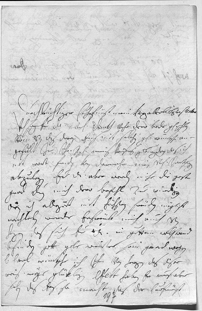 0001Durchleüchtiger Cuhrfürst, mein herzallerliebster herr vatter 0002Ich sag ewer Durchlaucht vnterdehnigsten dankh vohr dero bede gnädige schreiben 0003vom 8ten dis , deren eins mit solchen gnädigen wuntsch an- 0004gefült zu ihr Mayestät, meins Keisers, geburzdag, das ich 0005nit wort finden kan, daruohr mein vnterdehnigste danksagung 0006abzulegen. Ewer Durchlaucht aber werden mihr die gröste 0007gnad duen, mich dero befehl zue würdigen, 0008den ich allezeit mit höchsten freüden möglist 0009nachleben werde. Erfreüt mich auch von 0010herzen, das sich ewer Durchlaucht in guttem wolstand 0011befinden, gott gebe weiter sein genad. Wegen 0012bruder Carl wüntsche ich ihm von herzen, das diser 0013reis möge glükigen effect haben. Er mues aber 0014sehn, das ers so macht, das der Curfürst