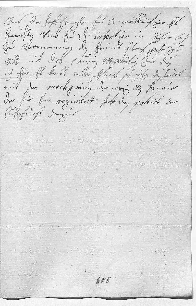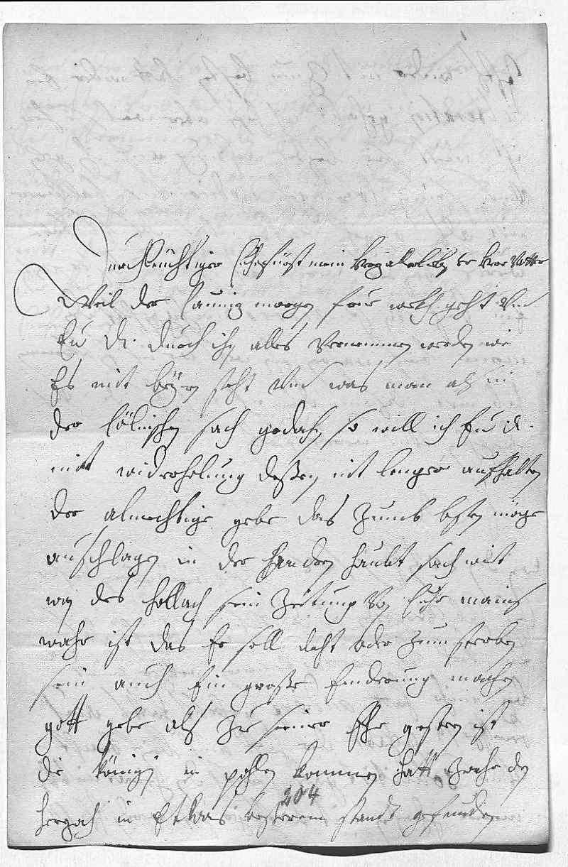 0001Durchleüchtiger Cuhrfürst, mein herzallerliebster herr vatter 0002Weil der Cauniz morgen frue wekh geht vnd 0003ewer Durchlaucht durch ihn alles vernemmen werden, wie 0004es mit Beyrn steht vnd was man als in 0005der cölnischen sach gedahn, so will ich ewer Durchlaucht 0006mit widerholung deßen nit lenger aufhalten, 0007der almechtige gebe, das zumb besten möge 0008auschlagen. In der andren haubt sach wirt, 0009wan des Hollach sein zeitung von Cuhr Mains 0010wahr ist, das er soll doht oder zum sterben 0011sein, auch ein große enderung machen, 0012gott gebe als zue seiner ehr. Gestern ist 0013die Königin in Pohlen kommen, hatt zwahr den 0014Herzoch in etwas beßerem standt gefunden,