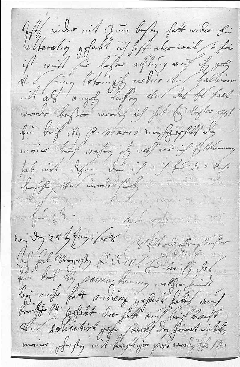 0015heute ists wider nit zum besten, hatt wider ein 0016alteration gehabt. Ich hoff aber, weil sie hier 0017ist, wirt sie beßer achtung auf ihn geben 0018vnd seinen lotringschen medico vnd balbirer 0019nit als angehn laßen vnd das es balt 0020werde beßer werden. Ich hab bey lester post 0021ein brif von Pater Marco nachgeschikt, dan 0022meine brif wahren schon wekh, wie ich ihn bekommen 0023hab. Mit disem due ich mich ewer Durchlaucht vnterdehnigst 0024befehlen vnd werde sterben 0025ewer Durchlaucht 0026ewer Liebden0027vnterdehnigste treügehorsamste dochter 0028EMT 0029Wien den 25ten junij 16880030Ich hab vergeßen, ewer Durchlaucht vnterdehnigst zue berichten, das 0031ein kerl von Parma kommen, welcher heündt 0032bey mihr hatt audienz gehabt, hatts auch 0033beim ihr Mayestät gehabt. Der hatt auch brif bracht 0034vnd solicitirt gahr starkh den heirat mit ein 0035meiner schwestern, mit konftiger post werden ihr Mayestät