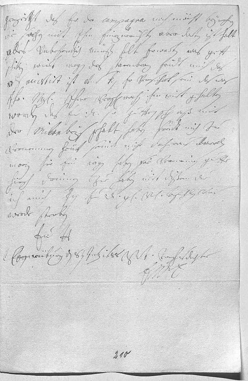 0040gezeigt, das er der campagna noch möcht beywohnen, 0041die sachen mit ihm einzuerichten, aber dorten ist halt 0042alles vnbestendich, müeßen halt erwarten, was gott 0043schiken wirt. Wegen des Starenberg freüdt mich, das 0044als aiustirt ist, vnd kan er versichert sein, das was 0045ihr Mayestät ihme verschprochen, ihm wirt gehalten 0046werden. Das ewer Durchlaucht so gutten schpaß mit 0047der milan beys gehabt haben, freüdt mich zue 0048vernemmen. Heüdt seindt mihr dahraus, werden 0049morgen hie ein iagen haben, sie vermeinen gutte 0050hirsch drinnen zue haben. Mit dißem due 0051ich mich in ewer Durchlaucht gnade vnterdehnigst befehlen vnd 0052werde sterben 0053ewer Durchlaucht 0054vnterdehnigste trewgehorsamste dochter 0055EMT 0056Corneüburg den 8ten julij 1688