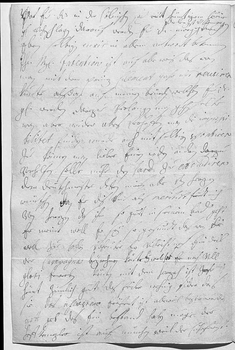 0018Was ewer Durchlaucht in der cölnischen sach mit heüntigem curir 0019gnädigst vohrschlagen, darauf werden ewer Durchlaucht morgen oder lengst übermorgen durch 0020eben selbigen curir in allem antwort bekommen. 0021Ihr Mayestät intention ist auf alle weis, das wan 0022man mit dem Prinz Clement gahr nit reusiren 0023kunte, alsdan auf meinen brüedern, welchen ewer Durchlaucht 0024gnädig werden darzue verlangen, man gehn solte. 0025Wan aber wider alles verhoffen man die impossi- 0026bilitet finden wurde, auch mit selbigen es spontiren 0027zue können, man lieber einen ieden andren darzue 0028verhelfen solle, nuhr den Cardinal zue excludiren. 0029Dem Deütschmeister detten mirs alle von herzen 0030wüntschen, dan er dis vnd als meritirt. Freüdt mich 0031von herzen, das ihm so guett in seinem bad geht, 0032er meint woll, er sey so gesundt, das wan die 0033wall zue Collen vohrüber, er villeicht noch ein deil 0034der campagna beywohnen könte, bey welcher er noch vill 0035glori erwerben könten. Mit dem Herzoch ist zwahr 0036heünt zimlich gutt, das feibre wehnig. Sider das 0037sie das apostem eröfent, ist alleweil beßer worden, 0038gott geb, das ein bestand haben möge. Der 0039Hoffkanzler ist auf München, weil der Cuhrfürst