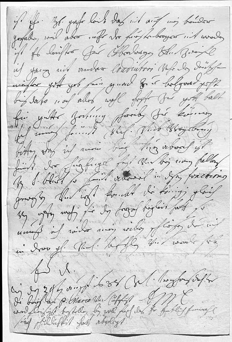 0001Durchleüchtiger Cuhrfürst, mein herzallerliebster herr vatter 0002Ewer Durchlaucht gnädiges schreiben vom 21ten dis hab mit 0003vnterdehnigstem respect erhalten vnd daraus mit freüden 0004dero guete gesuntheit vernommen, darbey der 0005almechtige ewer Durchlaucht bestendigst erhalten wolle. 0006Wegen meines bruder Carl heirats werden ewer Durchlaucht 0007durch den curir alles empfangen haben. 0008Ich überschikh auch vnterdehnigst, was mihr der Grav 0009Carl vohr zeitungen aus Polen geben, welche 0010heündt seindt eingeloffen. Es gefalt mihr das, 0011was der brandenburgische inuiato soll gemelt 0012haben. Wie die wall zue Lüttich abgeloffen, 0013werden ewer Durchlaucht schon gnädigst vernommen haben. Mein,