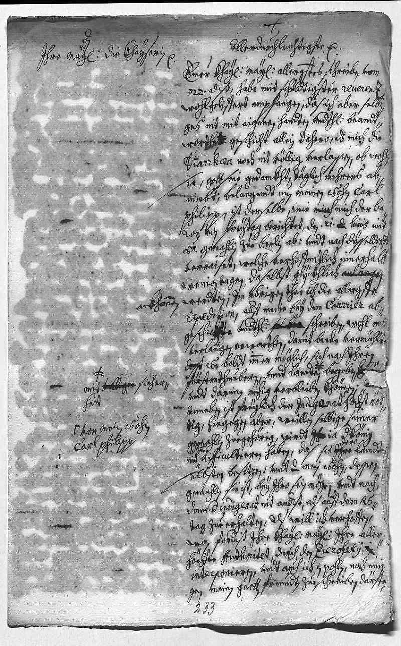 Entschuldigt sich dafür, wegen seiner Krankheit nicht eigenhändig schreiben zu können. – Sein Sohn Karl Philipp ist mit seiner Gemahlin am 21. August von Berlin nach Düsseldorf abgereist und PW hofft, dass sie bald auf die Besitzungen in Polen reisen können. Die Fürsprache Kaiser Leopolds I. über seinen Residenten Zierowski wegen des Indigenats für Karl Philipp auf dem nächsten Reichstag wird hoffentlich fruchten. – Der Kurfürst von Bayern hat sich inzwischen wegen der Wahl in Köln bedankt, ebenso wie Prinz Joseph Clemens selbst. – Über den Ausgang der Bischofswahl in Lüttich ist EMT sicher informiert; Gott sei Dank hat der Deutschmeister (PWs Sohn Ludwig Anton) die Wahl des Kardinals dort verhindern können und hat nun Hoffnung, selbst zum Koadjutor ernannt zu werden.
