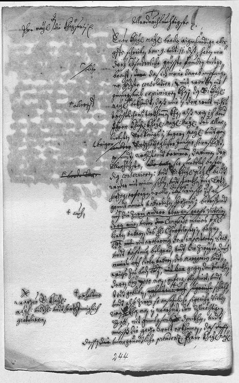 Ist erfreut, von der Gesundheit aller zu hören und hofft, dass EMT bald wieder mit einem gesunden Erzherzog erfreut wird. – Gratulation zur Eroberung von Belgrad unter der Führung des Kurfürsten von Bayern und zum Sieg des Markgrafen Ludwig von Baden gegen die Osmanen . – Dankt für Schreiben Graf Karls von Waldstein nach Polen.