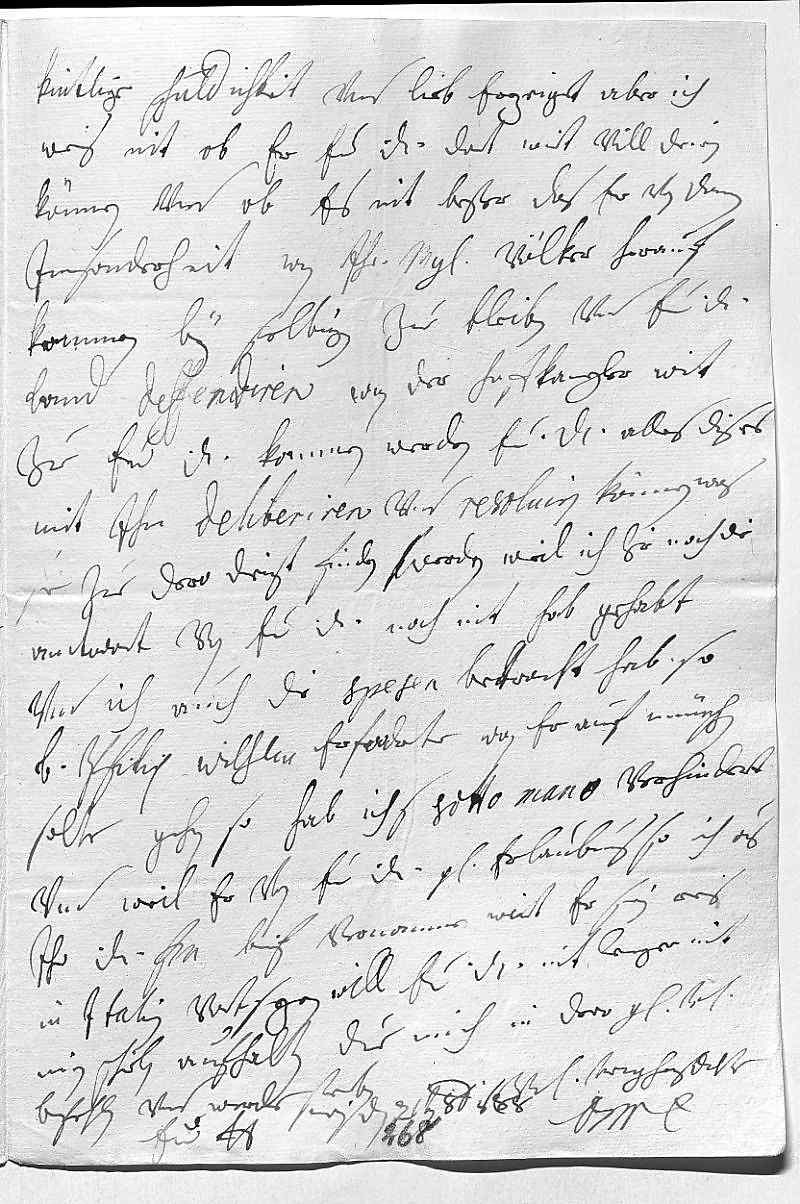 0029kintlige schuldichkeit vnd lieb erzeiget. Aber ich 0030weis nit, ob er ewer Durchlaucht dort wirt vill dienen 0031können, vnd ob es nit beßer, das er von danen geht, 0032insonderheit, wan ihr Mayestät völker herauf 0033kommen, bey selbigen zue bleiben vnd ewer Durchlaucht 0034land zu deffendiren. Wan der Hoffkanzler wirt 0035zue ewer Durchlaucht kommen, werden ewer Durchlaucht alles dises 0036mit ihm deliberiren vnd resoluiren können, was 0037sie zue dero dienst finden werden. Weil ich hir noch die 0038antwort von ewer Durchlaucht noch nit hab gehabt 0039vnd ich auch die spesen betracht hab, so 0040bruder Pfilip Wilhelm erforderte, wan er auf München 0041solte gehen, so hab ichs sotto mano verhindert, 0042vnd weil er von ewer Durchlaucht gnädiger erlaubnus hat, so ich aus 0043ihr Durchlaucht fraw mutter brif vernommen, wirt er sein reis 0044in Italien vortsezen. Will ewer Durchlaucht nit lenger mit 0045mein schreiben aufhalten, due mich in dero gnade vnterdehnigst 0046befehlen vnd werde sterben 0047ewer Durchlaucht 0048vnterdehnigste trewgehorsamste dochter 0049EMT 0050Wien den 21ten octobris 1688