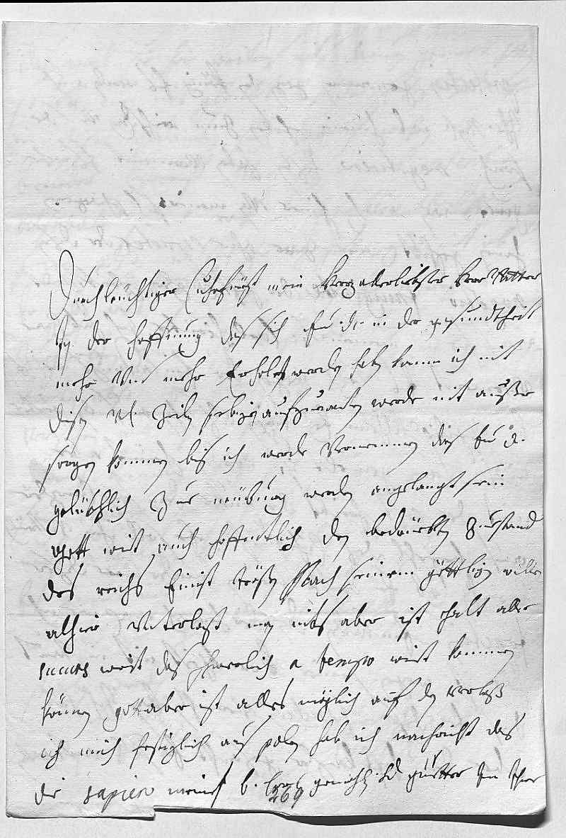 0001Durchleüchtiger Cuhrfürst, mein herzallerliebster herr vatter 0002In der hoffnung, das sich ewer Durchlaucht in der gesundtheit 0003mehr vnd mehr erholet werden haben, komm ich mit 0004disen vnterdehnigsten zeilen selbigen aufzuewarten, werde nit außer 0005sorgen kommen, bis ich werde vernemmen, das ewer Durchlaucht 0006gelükhlich zue Neüburg werden angelangt sein. 0007Gott wirt auch hoffentlich den bedrüebten zuestand 0008des Reichs einist trösten nach seinem göttligen willen. 0009Alhier vnterlast man niks, aber ist halt aller 0010sucurs weit, das schwerlich a tempo wirt kommen 0011können, gott aber ist alles möglich, auf den verlaß 0012ich mich festiglich. Aus Polen hab ich nachricht, das 0013die Sapien meins bruders Carl gemahlin Liebden guetter zu ihrer