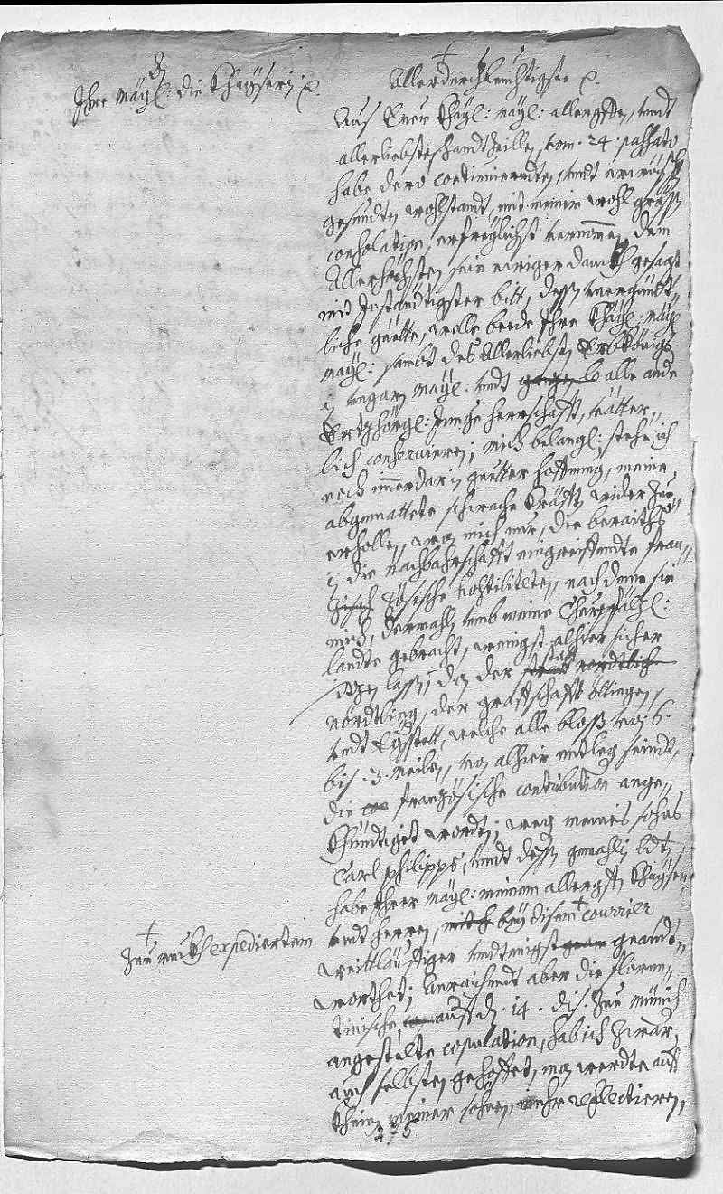 Ist erfreut über die Gesundheit der kaiserlichen Familie und hofft selbst auf baldige Wiederherstellung, solange die Franzosen ihn in Neuburg in Ruhe lassen. Nördlingen, Eichstätt und der Grafschaft Öttingen sind mittlerweile schon französische Kontributionen auferlegt worden. – Wegen seines Sohnes Karl Philipp und seiner Gemahlin hat PW Kaiser Leopold I. mit dem gleichen Kurier ausführlich geantwortet. – Wegen der Hochzeit in München am 14. November hat PW zwar gehofft, man werde sich zufriedengeben, aber nun wird er auf Wunsch des Kurfürsten von Bayern seinen Sohn Friedrich Wilhelm als Vertreter des Bräutigams benennen.