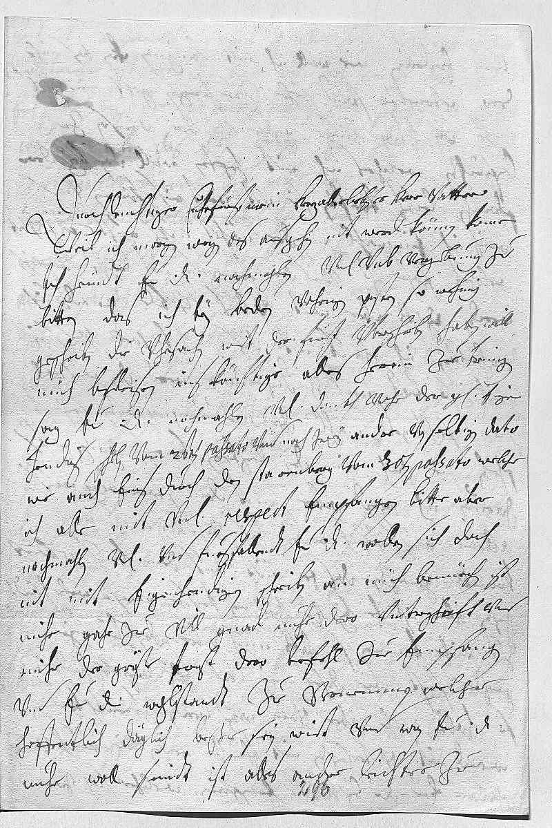0001Durchleüchtiger Cuhrfürst, mein herzallerliebster herr vatter 0002Weil ich morgen wegen des ausgehn nit werd können, kome 0003ich heündt, ewer Durchlaucht nochmahlen vnterdehnigst vmb vergebung zue 0004bitten, das ich bey beden vohrigen posten, so wehnig 0005geschriben. Die vhrsachen wirt der Fürst überschriben haben, will 0006mich befleisen, ins könftige alles herein zue bringen. 0007Sag ewer Durchlaucht nochmahlen vnterdehnigst dankh vohr dero gnädige eigen- 0008hendig schreiben vom 26ten passato vnd noch zwey andre von selbigen dato, 0009wie auch eins durch den Starenberg vom 30ten passato, welche 0010ich alle mit vnterdehnigstem respect empfangen. Bitte aber 0011nachmahlen vnterdehnigst vnd fuesfallendt, ewer Durchlaucht wollen sich doch 0012nit mit eigenhendigen schreiben an mich bemüehen. Ist 0013mihr gahr zue vill gnad nuhr dero vnterschrift vnd 0014mihr der gröste trost, dero befehl zue empfangen, 0015vnd ewer Durchlaucht wohlstandt zu vernemmen, welcher 0016hoffentlich däglich beßer sein wirt. Vnd wan ewer Durchlaucht 0017nuhr woll seindt, ist alles andre leichter zue