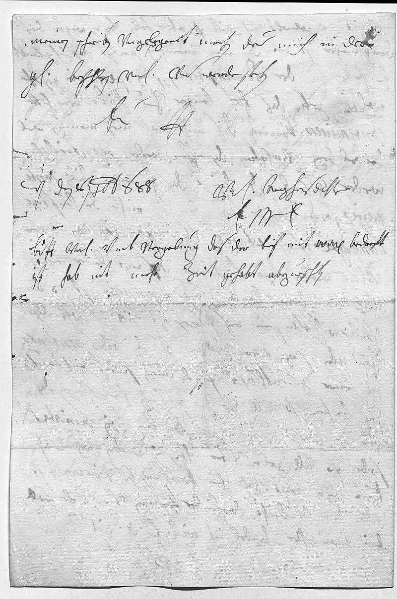 0059mit meinen schreiben vngelegenheit machen, due mich in dero 0060gnade befehlen vnterdehnigst vnd werde sterben 0061ewer Durchlaucht 0062vnterdehnigste trewgehorsamste dochter 0063EMT 0064Wien den 8ten decembris 16880065Bitt vnterdehnigst vmb vergebung, das der brif mit wax bedreft 0066ist, hab nit mehr zeit gehabt abzueschreiben.