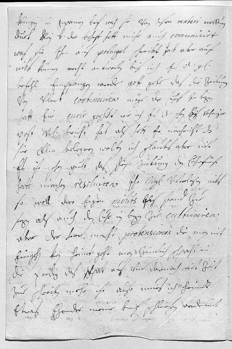 0014der Königin in Spanien brif, woh sie von diser materi meldung 0015duet. Mein bruder, der Bischoff, hatt mihr auch comunicirt, 0016was sie ihm aus Portugal schreibt, hab aber auf 0017niks können recht antworten, bis ich ewer Durchlaucht gnädigen 0018befehl empfangen werde. Gott gebe, das die zeitung 0019von Vlmb continuiren möge. Der Cuhrfürst in Beyern 0020hatt ein curir geschikt, wie ich ewer Durchlaucht schon bey vohriger 0021post vnterdehnigst bericht hab, als hett er nachricht, das 0022sie Vlm belegren wolten, ich glaubs aber nit. 0023Es ist schon guet, das diese zeitung den Cuhrfürst 0024hatt machen resoluiren. Ihr Mayestät vnterlaßen niks, 0025so woll dero eigen milits ins stand zue 0026sezen als auch den Cuhrfürsten in Beyrn zue cultiuiren, 0027aber der herr macht pretensiones, die man nit 0028eingehen kan. Heünt geht man zimlich schpaht in 0029die predig, das schpat aus vnd darnach nit zeit 0030zue schreiben mehr ist, also mues ich heündt 0031etwas ehender meine brif schliesen, werde mit