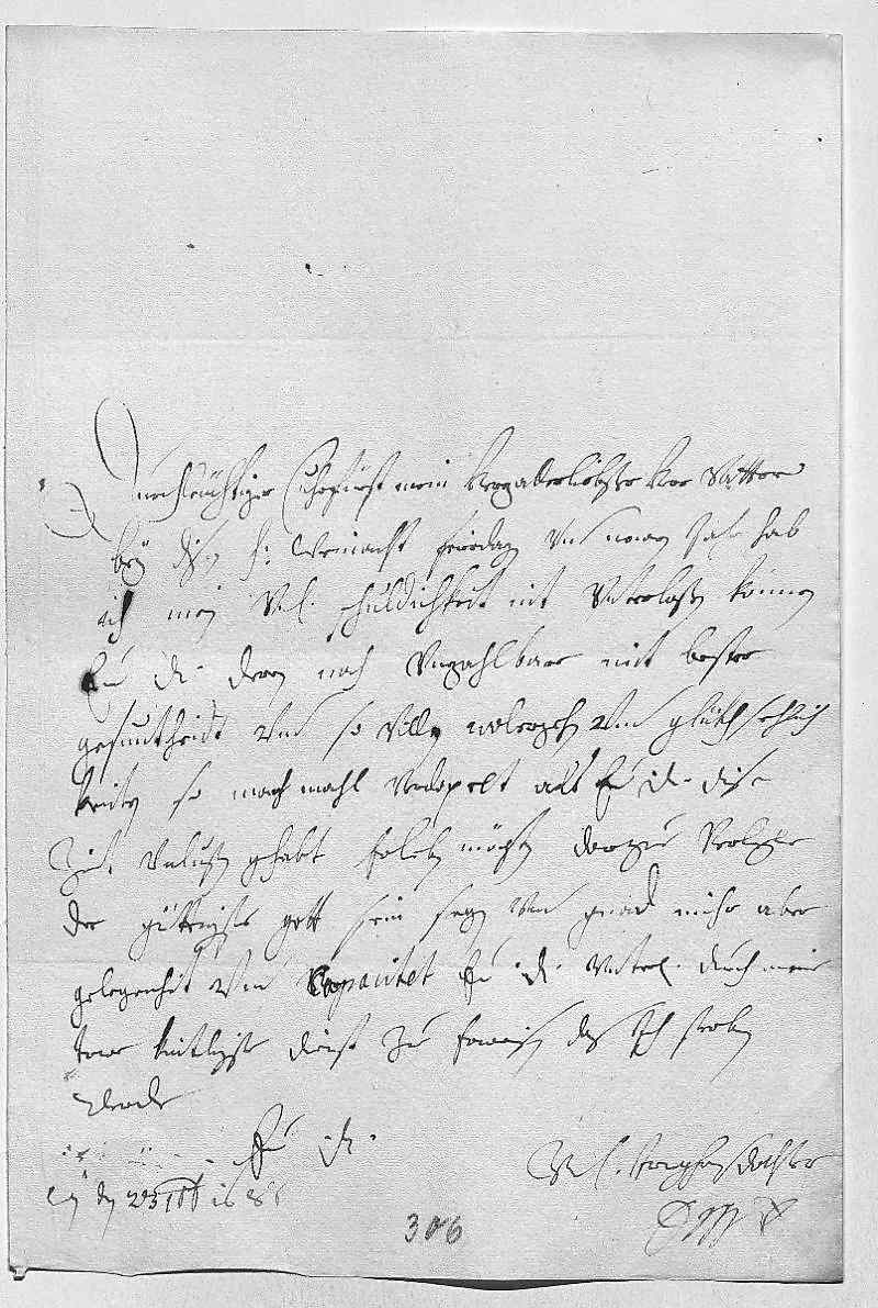 0001Durchleüchtiger Cuhrfürst, mein herzallerliebster herr vatter 0002Bey disen heiligen weinacht feierdagen vnd newen iahr hab 0003ich mein vnterdehnigste schuldichkeit nit vnterlaßen können, 0004ewer Durchlaucht deren noch vnzahlbare mit bester 0005gesuntheidt vnd so villen wolergehn vnd glükhsehlich- 0006keiten, so noch mahl verdopelt, als ewer Durchlaucht dise 0007zeit vnlusten gehabt, erleben möchten. Darzue verleye 0008der güttigste gott sein segen vnd gnad, mihr aber 0009gelegenheit vnd capacitet, ewer Durchlaucht vnterdehnigst durch meine 0010trewe kintligste dienst zue erweisen, das ich sterben 0011werde 0012ewer Durchlaucht 0013vnterdehnigste trewgehorsamste dochter 0014EMT 0015Wien den 23ten decembris 16861