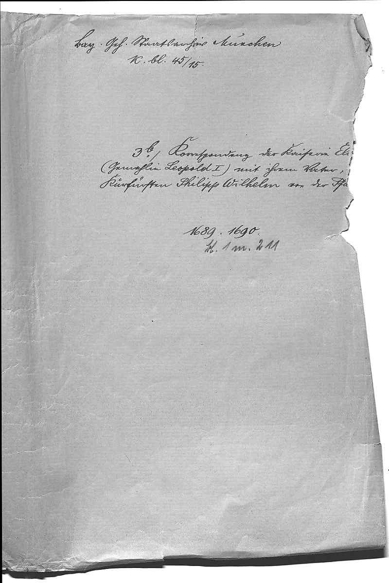 Wegen des Schreibens der Königin von Portugal (PWs Tochter Maria Sophie) und ihres Beichtvaters Leopold Fuess in der Angelegenheit des Bischofs von Breslau (PWs Sohn Franz Ludwig) hat PW ausführliche Schreiben von Kaiser Leopold I. empfangen und bezieht sich auf seine Antwort an diesen. – Der Kurfürst von Bayern hat inzwischen Truppen nach Lauingen geschickt, um die Stadt besser zu sichern; PW hofft, dass diese mehr ausrichten als die sächsischen, die eigentlich nur die Quartiere beansprucht haben. – Er entschuldigt sich dafür, dass sein Schreiben wegen Ingolstadt beim Kaiser einen falschen Eindruck gemacht habe; er sei sich der kaiserlichen Protektion immer gewiss. – Hofkanzler Graf Strattmann wird schon berichtet haben, was PW wegen des vom Schlag getroffenen Bischofs von Konstanz und seinem Sohn Friedrich Wilhelm geschrieben hat. – Hat den Sohn seines Hofmarschalls von Steinkallenfels mit seinem Sohn Philipp Wilhelm nach Italien geschickt und hofft auf die Zustimmung der Kaiserin.