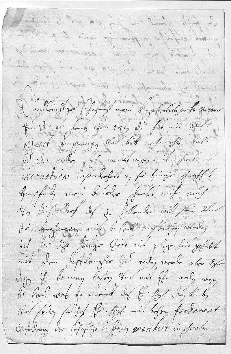 0001Durchleüchtiger Cuhrfürst, mein herzallerliebster herr vatter 0002Ewer Durchlaucht gnädiges schreiben vom 24ten dis hab mit vnterdehnigstem 0003respect empfangen vnd bitt nochmahlen vnterdehnigst, 0004ewer Durchlaucht wollen sich meinetwegen mit schreiben nit 0005incomodiren, insonderheit, wan sie einige schwachheit 0006empfinden. Mein brueder schreibt mihr auch 0007von Düßeldorf, das die hollender wekh sein vnd 0008die Erzherzogin mit bruder Carl aufbrechen werden. 0009Ich hab dise heilige zeit nit gelegenheit gehabt 0010mit dem Hoffkanzler zue reden, werde aber dise 0011dagen ihn kommen laßen vnd mit ihm reden wegen 0012bruder Carl, was er meint, das ihr Mayestät duen könten, 0013vnd sodan solches ihr Mayestät mit beßern fondament 0014vohrdragen. Der Cuhrfürst in Beyren marchirt in Schwaben,