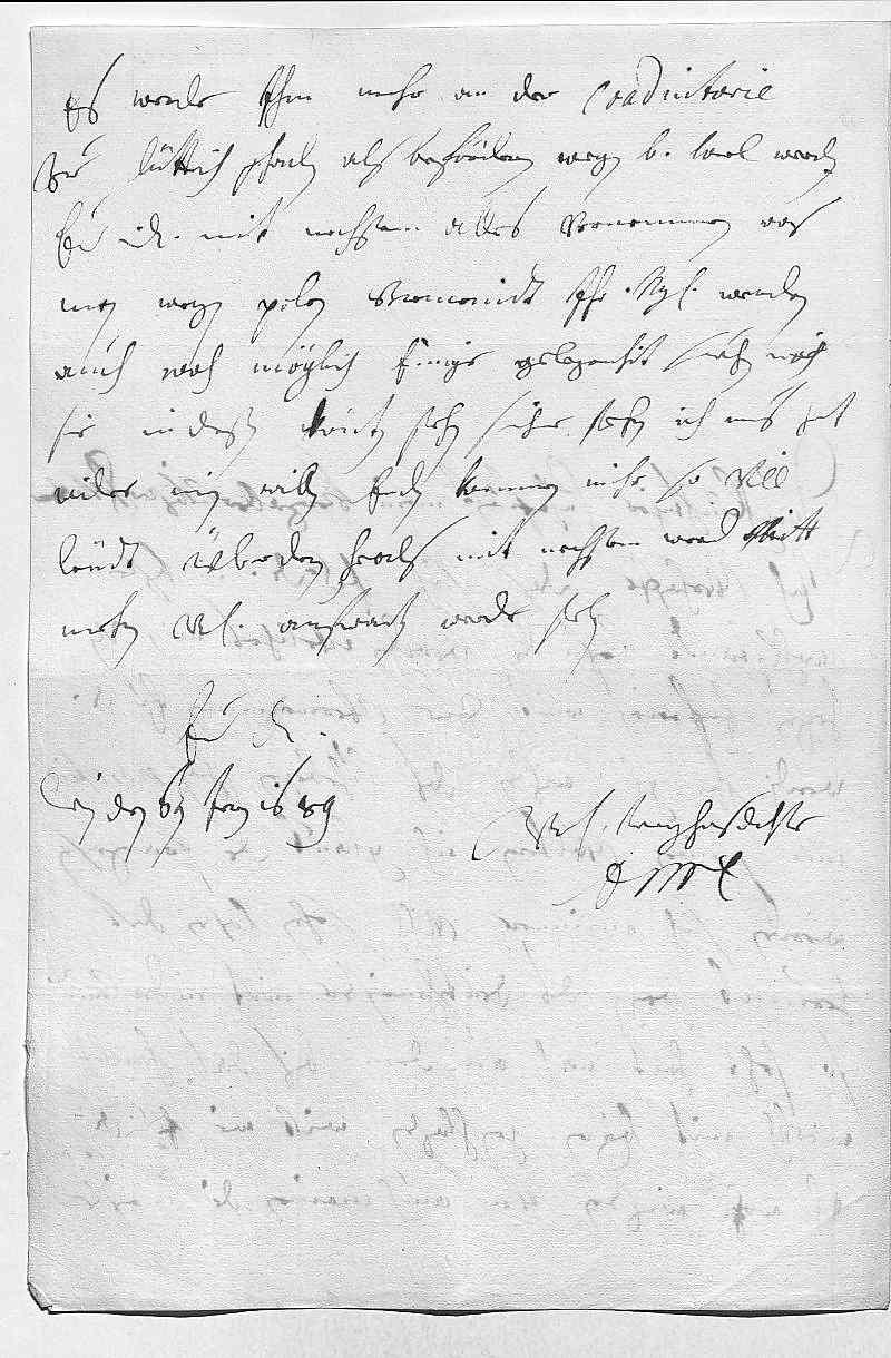 0012es werde ihm mehr an der coadiutorie 0013zue Lüttich schaden als befördern. Wegen bruder Carl werden 0014ewer Durchlaucht mit nechstem alles vernemmen, was 0015man wegen Polen vermeindt. Ihr Mayestät werden 0016auch woh möglich einige gelegenheit suechen, woh0017sie in deßen könten stehen sicher stehen. Ich mus heut 0018wider mein willen enden, kommen mihr so vill 0019leüdt über den hals, mit nechstem werd mitt 0020mehren vnterdehnigst aufwarten, werde sterben 0021ewer Durchlaucht 0022vnterdehnigste trewgehorsamste dochter 0023EMT 0024Wien den 6ten jener 1689