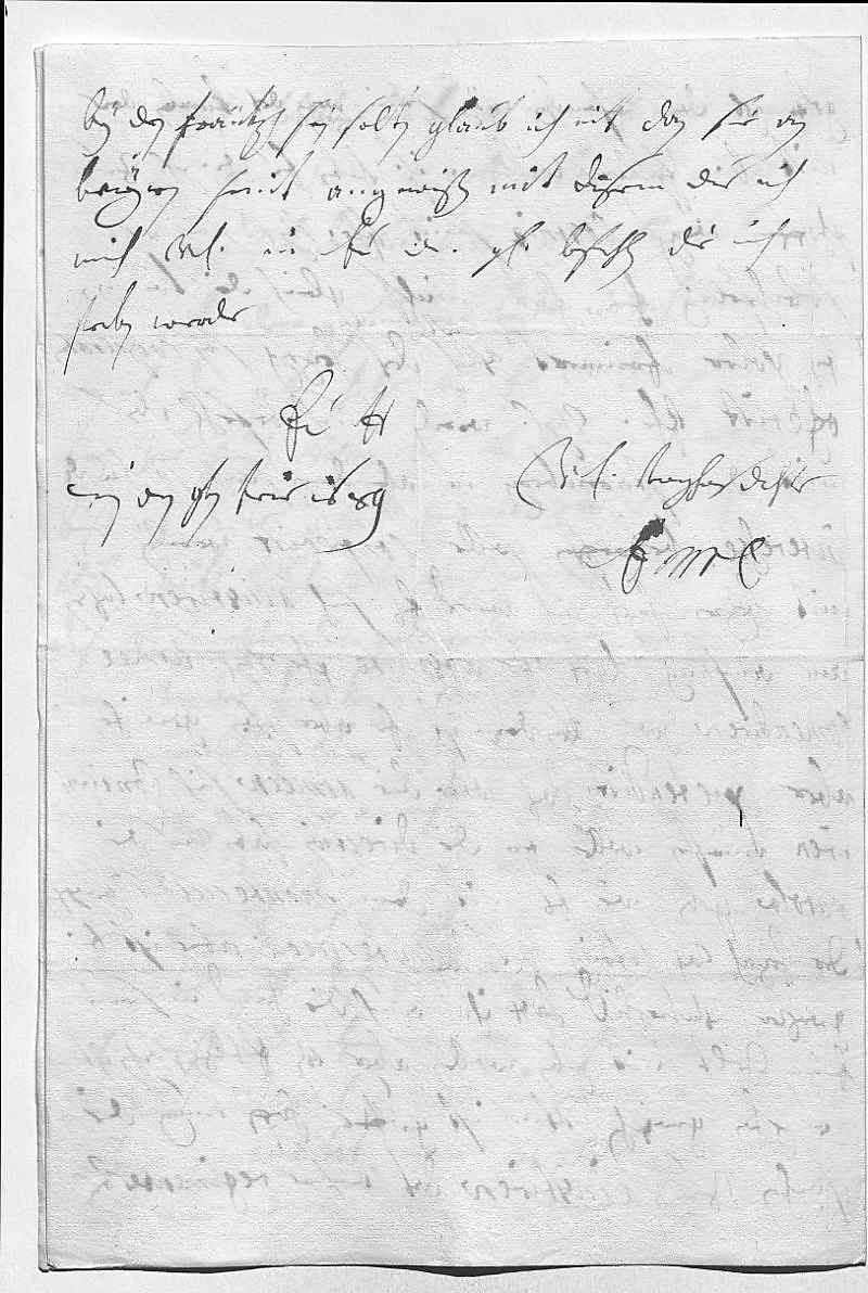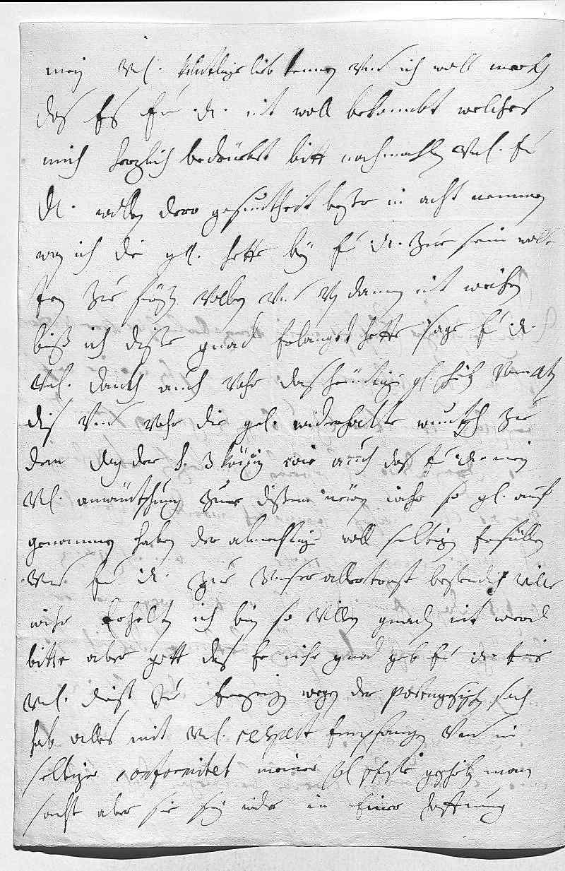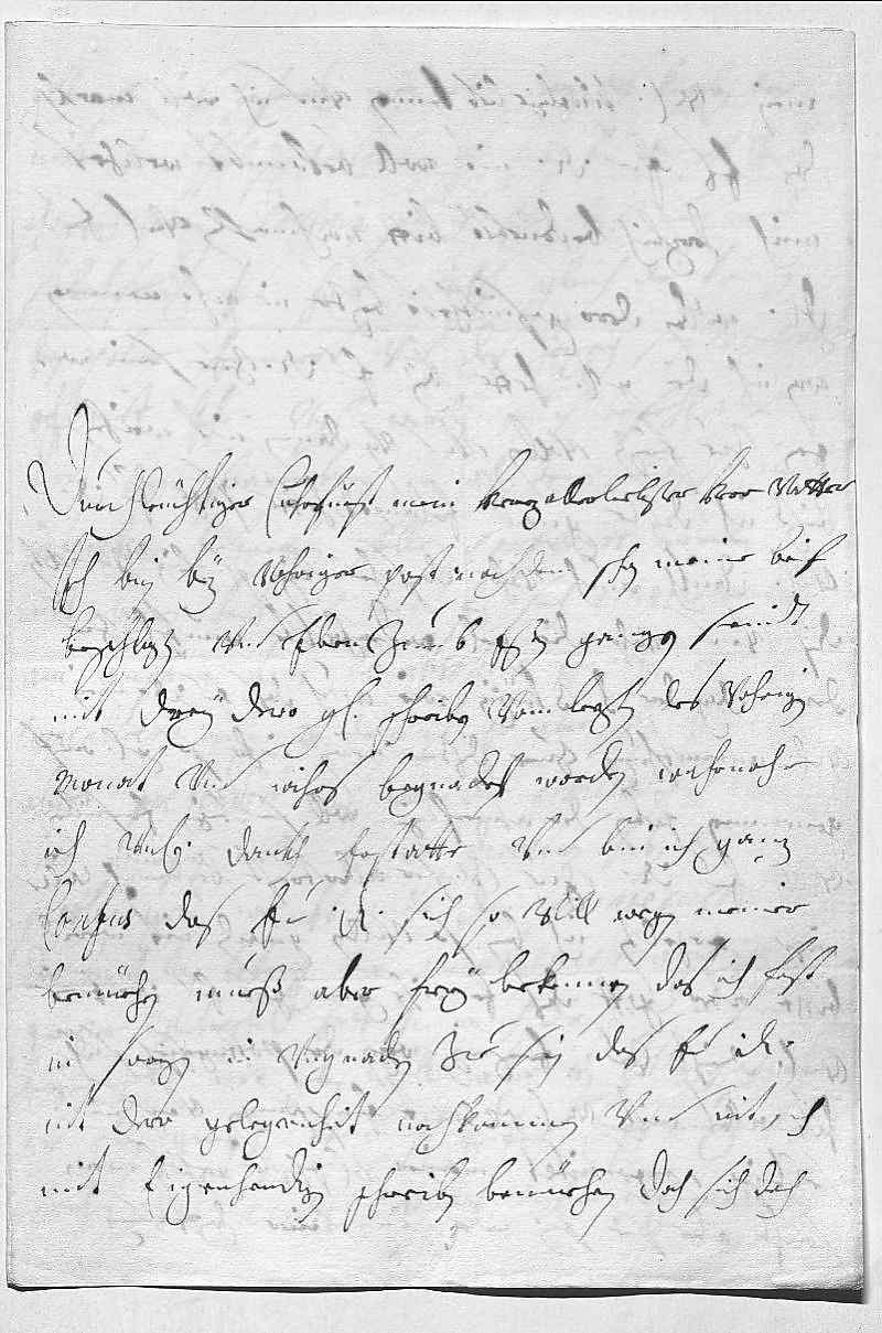 0001Durchleüchtiger Cuhrfürst, mein herzallerliebster herr vatter 0002Ich bin bey vohriger post, nachdem schon meine brif 0003beschloßen waren vnd wir eben zumb eßen gangen seindt, 0004mit drey dero gnädigen schreiben vom lezten des vohrigen0005monat vnd iahrs begnadet worden, wahrvohr 0006ich vnterdehnigsten dankh erstatte, vnd bin ich ganz 0007confus, das ewer Durchlaucht sich so vill wegen meiner 0008bemüehen. Mueß aber frey bekennen, das ich fast 0009in sorgen bin, in vngnaden zue sein, das ewer Durchlaucht 0010nit dero gelegenheit nachkommen vnd nit sich 0011mit eigenhendigen schreiben bemüehen, dah sih doch