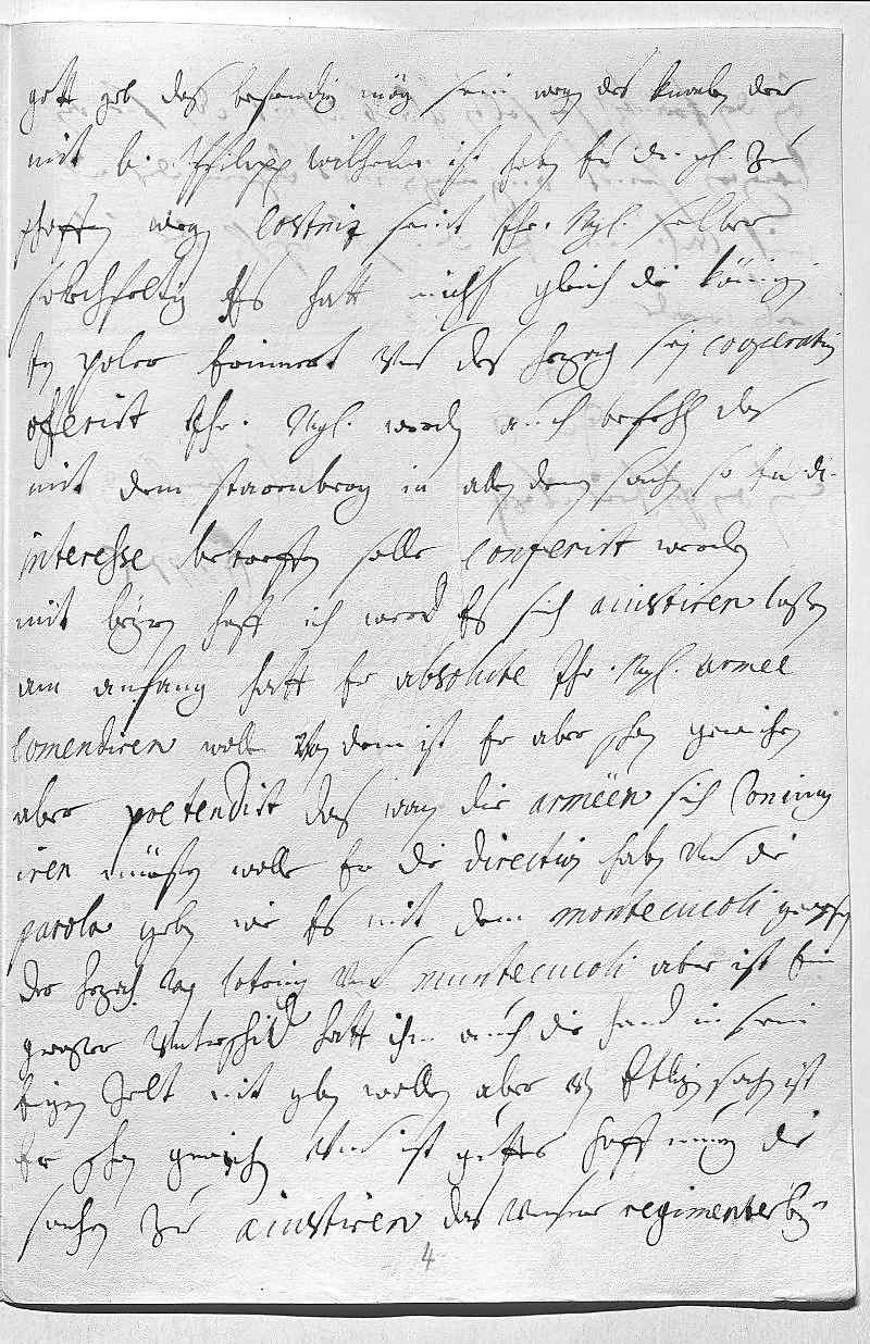 0031gott geb, das bestendig mög sein. Wegen des knaben, der 0032mit bruder Pfilipp Wilhelm ist, haben ewer Durchlaucht gnädigst zu 0033schaffen. Wegen Costniz seint ihr Mayestät selber 0034sorchfeltig. Es hatt mich gleich die Königin 0035in Poler erinnert vnd des Herzog sein cooperation 0036offerirt. Ihr Mayestät werden auch befehlen, das 0037mit dem Starenberg in allen denen sachen, so ewer Durchlaucht 0038interesse betreffen, solle conferirt werden. 0039Mit Beyren, hoff ich, werd es sich aiustiren laßen, 0040am anfang hatt er absolute ihr Mayestät armee 0041comendiren wollen, von dem ist er aber schon gewichen, 0042aber pretendirt, das wan die arméén sich coniung- 0043iren müesten, wolle er die direction haben vnd die 0044parola geben, wie es mit dem Montecucoli gewesen. 0045Der Herzoch von Lotring vnd Muntecucoli aber ist ein 0046großer vnterschid. Er hatt ihm auch die hand in sein 0047eigen zelt nit geben wollen, aber von etligen sachen ist 0048er schon gewichen vnd ist gutte hoffnung, die 0049sachen zue aiustiren. Das vnsere regimenter bey