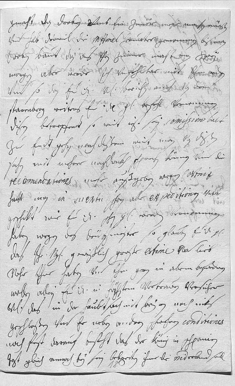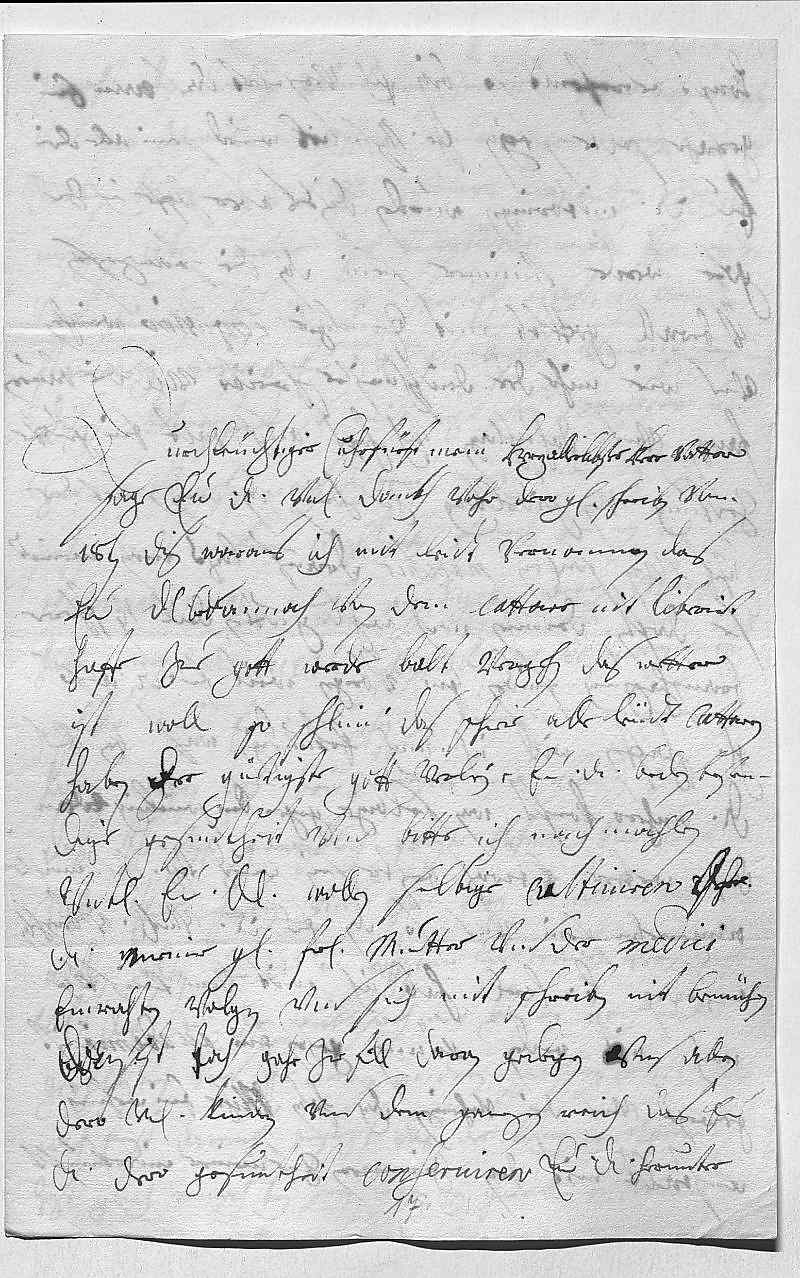0001Durchleüchtiger Cuhrfürst, mein herzallerlibster herr vatter 0002Sage ewer Durchlaucht vnterdehnigsten dankh vohr dero gnädiges schreiben vom 000318ten dis, waraus ich mit leidt vernommen, das 0004ewer Durchlaucht annoch von dem cattarr nit liberirt sind, 0005hoffe zue gott, werde balt vergehen. Das wetter 0006ist woll so schlim, das schier alle leüdt cattaren 0007haben, der gütigste gott verleye ewer Durchlaucht beden besten- 0008dige gesuntheit. Vnd bitte ich nachmahlen 0009vnterdehnigst, ewer Durchlaucht wollen selbige cultiuiren, ihr 0010Durchlaucht, meiner geliebsten fraw muetter, vnd der medici 0011einrahten volgen vnd sich mit schreiben nit bemühen, 0012dan ist jah gahr zue fill daran gelegen, vns allen 0013dero vnterdehnigsten kindern vnd dem ganzen Reich, das ewer 0014Durchlaucht dero gesuntheit conseruiren. Ewer Durchlaucht herunter