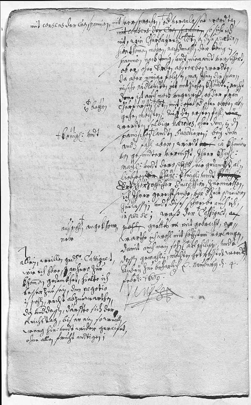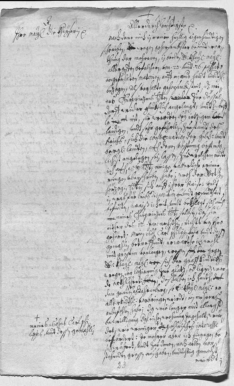 PW hat schon eigenhändig auf Schreiben von EMT geantwortet, hat nun aber noch einen Nachtrag. – Der Kurprinz (PWs Sohn Johann Wilhelm) ist wieder in Düsseldorf eingetroffen; PW hat ihm diverse Ratschläge wegen der schwierigen Lage mitgegeben. Von der Reise der Erzherzogin (Maria Anna Josepha) weiß man nichts; auch Johann Wilhelm hat seit dem 12. Januar nichts von ihr gehört. – Wegen seines Sohnes Karl Philipp und seiner Gemahlin wartet PW auf Äußerungen des Grafen Kinsky bezüglich der Unterbringung in Glatz oder Liegnitz und bittet um weitere Fürsprache EMTs zu seiner Entlastung. – Die Reise nach Wien ist wahrscheinlich derzeit ohne große Gefahr möglich; ihr Beginn hängt von einem kaiserlichen Befehl ab. – Der Kurfürst von Bayern ist neulich bis an das Tor von Heidelberg vorgedrungen, musste aber feststellen, dass ohne Infanterie und Artillerie nichts auszurichten ist. Die Franzosen haben 14 schöne Dörfer in der Umgebung Heidelbergs niedergebrannt und planen die Sprengung des Schlosses. – Das kaiserliche Schreiben wegen Konstanz für seinen Sohn Friedrich Wilhelm hat PW erhalten und entsprechend weitergeleitet. – Hinsichtlich der Statthalterschaft in den Niederlanden für den Deutschmeister (PWs Sohn Ludwig Anton) ist es sehr ehrenwert, dass dieser sich mit einer schriftlichen Befürwortung zufriedengibt, während der Kurfürst von Bayern auf seiner Forderung (die Statthalterschaft in den Niederlanden zu erhalten) weiter beharrt, obwohl nicht sicher ist, ob die Kurfürstin Erben hinterlassen wird. – Was der Cassignet aus Polen berichten kann, wird PW erwarten und ihn anhören, sobald er in Neuburg eingetroffen ist.