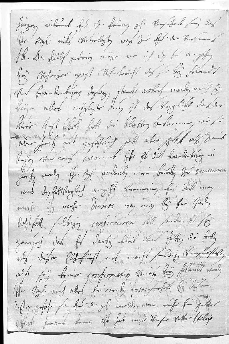 0013hingegen widrumb. Ewer Durchlaucht können gnädigst versichert sein, das 0014ihr Mayestät niks vnterlaßen, was zue ewer Durchlaucht vnd meins 0015herrn bruder Liebden hülf gedeien möge, wie ich dan ewer Durchlaucht schon 0016bey vohriger post vnterdehnigst bericht habe, das sie bey Holandt 0017vnd Brandenburg deswegen starkh arbeiten werden, auch bey 0018Beyren alles mögliste duen. Ist das vnglükh, das der 0019herr jezt eben hatt die blattern bekommen, wie sie 0020aber schreiben nit gefährlich, gott aber schikt als zumb 0021besten vnd weis, warumb ehr es duet. Brandenburg in 0022gleichen werden ihr Mayestät andreiben, mein bruedren zue sucuriren. 0023Was den erbvergleich angeht, vermeinen ein deil, man 0024mache ihn mehr dubios, wan man bey ein jeden 0025dohtfall selbigen confirmiren soll, sondren es sey 0026genuech, das es darbey bleib, vnd hetten die erben 0027als diser Cuhrfürst nit macht, selbigen vmzuestoßen, 0028also sey keiner confirmation vonöten. Bey Holandt werden 0029ihr Mayestät auch alles einwenden, insonserheit bey diser 0030lezten gefahr, so ewer Durchlaucht gnädig melden, wan nuhr ein gutter 0031effect heraus keme. Es hat mihr vnser vetter Pfilip