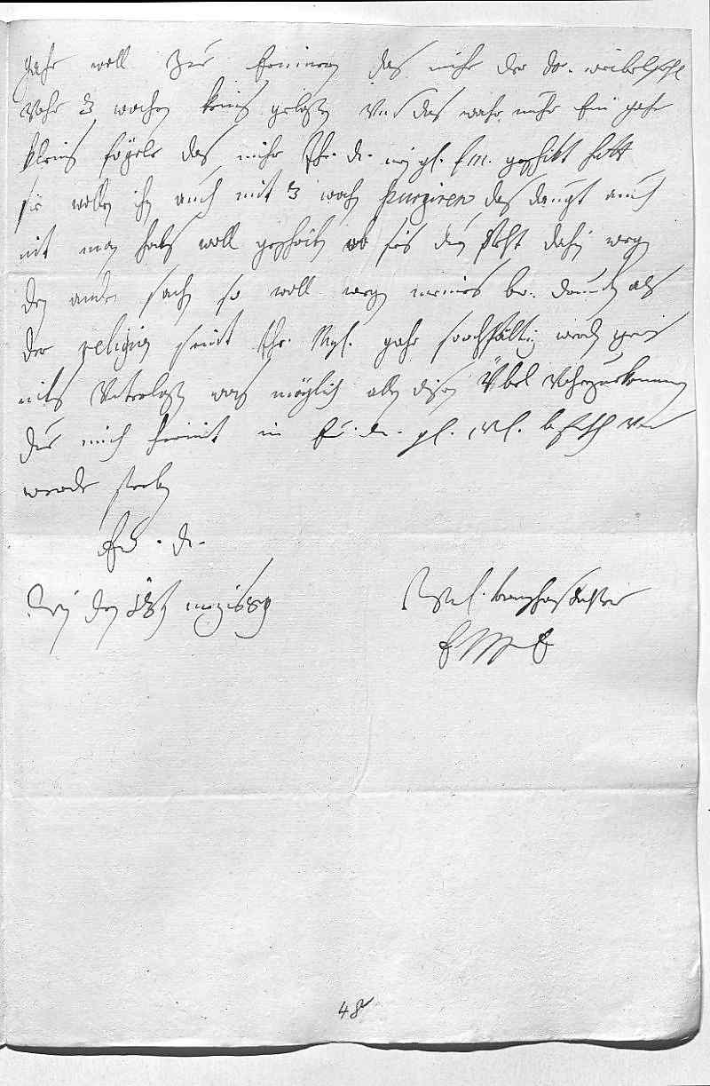 0032gahr woll zue erinnern, das mihr der Doktor Weibel sehlig 0033vohr 3 wochen keins gelaßen, vnd das wahr nuhr ein gahr 0034kleins fögele, das mihr ihr Durchlaucht, mein geliebste fraw mutter, geschikt hatt. 0035Sie wollen ihn auch mit 3 wochen purgiren, das daugt auch 0036nit, man habs woll geschriben, ob sies duen, steht dahin. Wegen 0037den andren sachen, so woll wegen meines bruders drunten als 0038der religion, seint ihr Mayestät gahr sorchfältig, werden gewis 0039niks vnterlaßen, was möglich allen disen übel vohrzuekommen. 0040Due mich hirmit in ewer Durchlaucht gnade vnterdehnigst befehlen vnd 0041werde sterben 0042ewer Durchlaucht 0043vnterdehnigste trewgehorsamste dochter 0044EMT 0045Wien den 13ten merz 1689