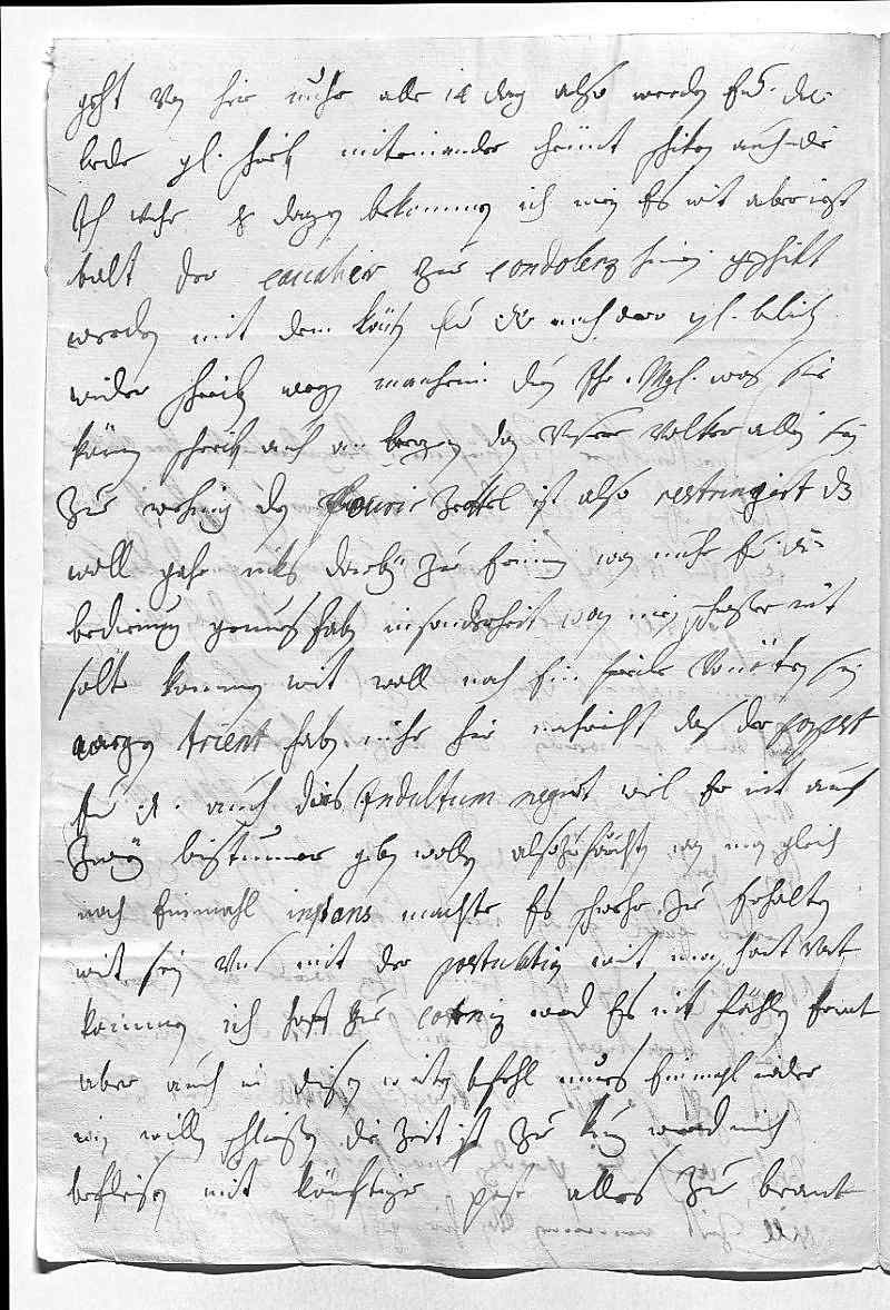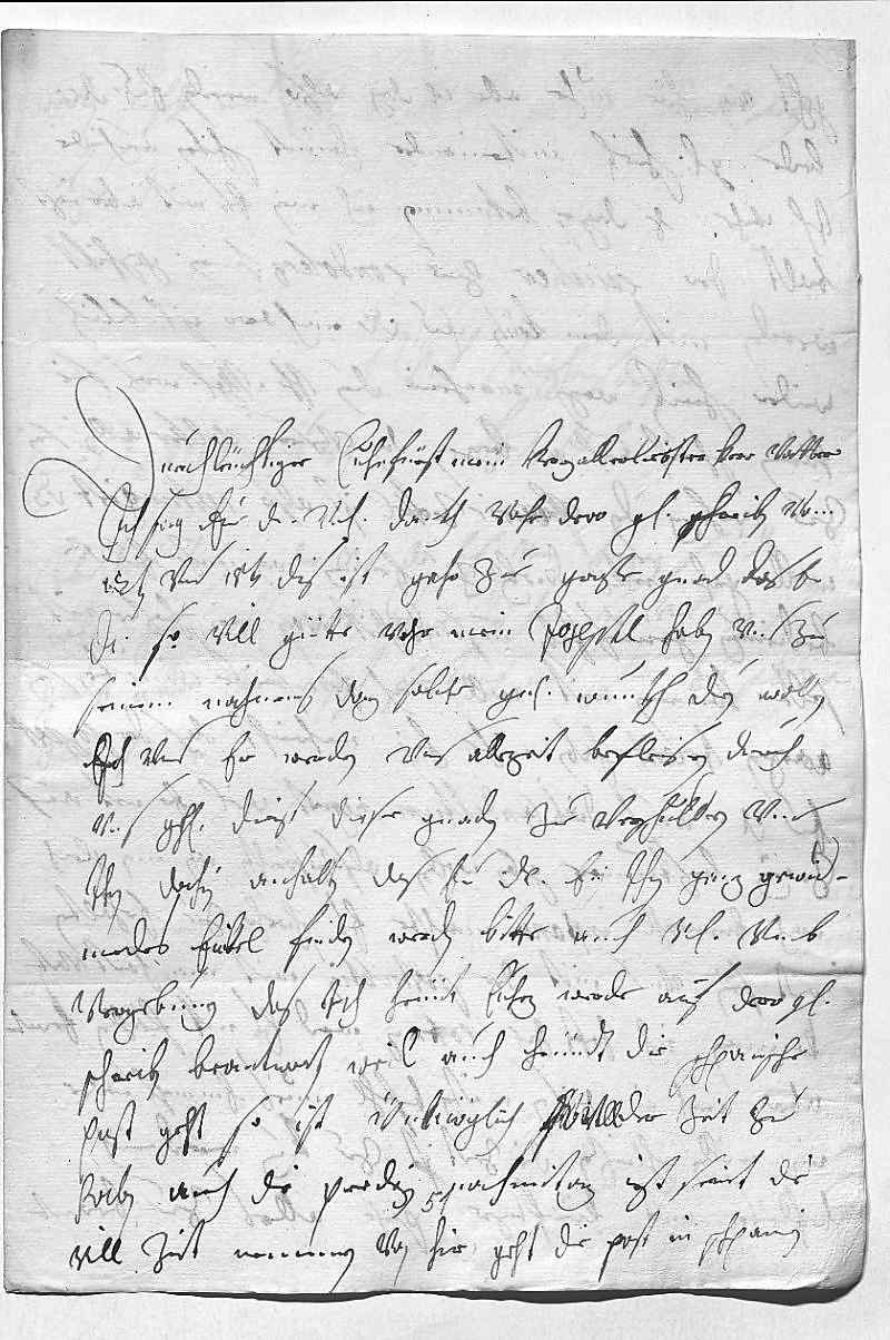 0001Durchleüchtiger Cuhrfürst, mein herzallerliebster herr vatter 0002Ich sag ewer Durchlaucht vnterdehnigsten dankh vohr dero gnädige schreiben vom 000312ten vnd 18ten dis, ist gahr zue große gnad, das ewer 0004Durchlaucht so vill gütte vohr mein Josephl haben vnd zu 0005seinem nahmens dag solche gnädige wuntsch duen wollen. 0006Ich vnd er werden vns allezeit befleisen, durch 0007vnsere gehorsamsten dienst diese gnaden zue verschulden vnd ich werde0008ihn dahin anhalten, das ewer Durchlaucht ein ihnen ganz gewid- 0009medes enikel finden werden. Bitte auch vnterdehnigst vmb 0010vergebung, das ich heünt cuhrz werde auf dero gnädiges 0011schreiben beantworten, weil auch heündt die schpanische 0012post geht, so ist ünmöglich, so vill der zeit zue 0013haben, auch die predigen nachmitag iezt seint, die 0014vill zeit nemmen. Von hier geht die post in Schpanien