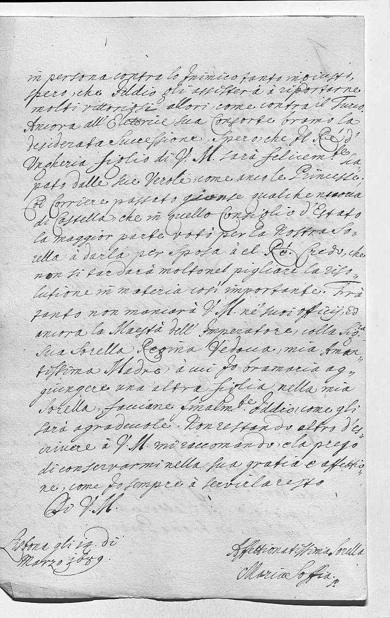 Inhalt: Die Königin freut sich über die militärischen Erfolge des Kaisers und hofft auf baldige Entscheidung des Königs von Spanien zugunsten ihrer beider Schwester.