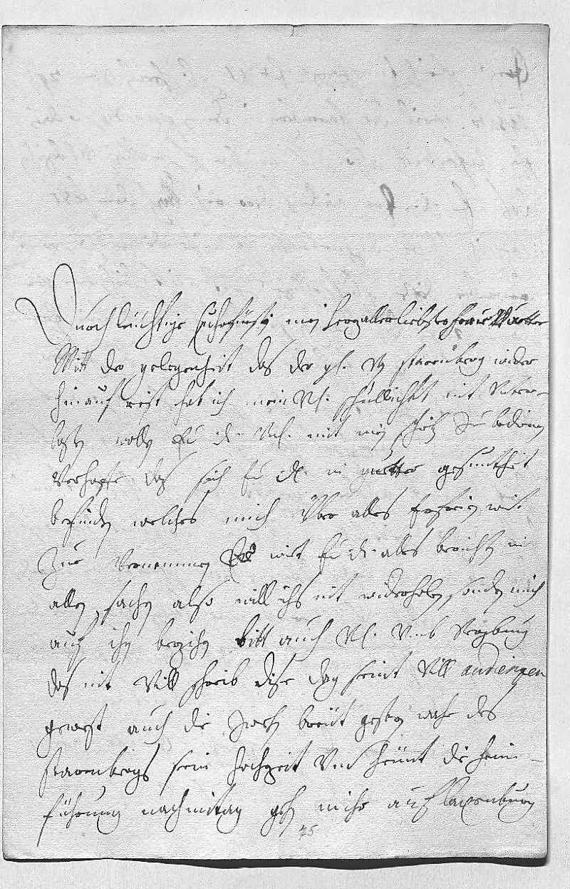 0001Durchleüchtige Cuhrfürstin , mein herzallerliebster herr vatter 0002Mit der gelegenheit, das der Grav von Starenberg wider 0003hinauf reist, hab ich mein vnterdehnigste schuldichkeit nit vnter- 0004laßen wollen, ewer Durchlaucht vnterdehnigst mit mein schreiben zu bedienen. 0005Verhoffe, das sich ewer Durchlaucht in guetter gesuntheit 0006befinden, welches mich über alles erfreien wirt 0007zue vernemmen. Er wirt ewer Durchlaucht alles berichten in 0008allen sachen, also will ichs nit widerholen, sondern mich 0009auf ihn bezihen. Bitt auch vnterdehnigst vmb vergebung, 0010das nit vill schreib, dise dag seint vill audienzen 0011gewest, auch die zwehn breüt. Gestern wahr des 0012Starenbergs sein hochzeit vnd heünt die heim- 0013führung. Nachmitag gehn mihr auf Laxenburg .