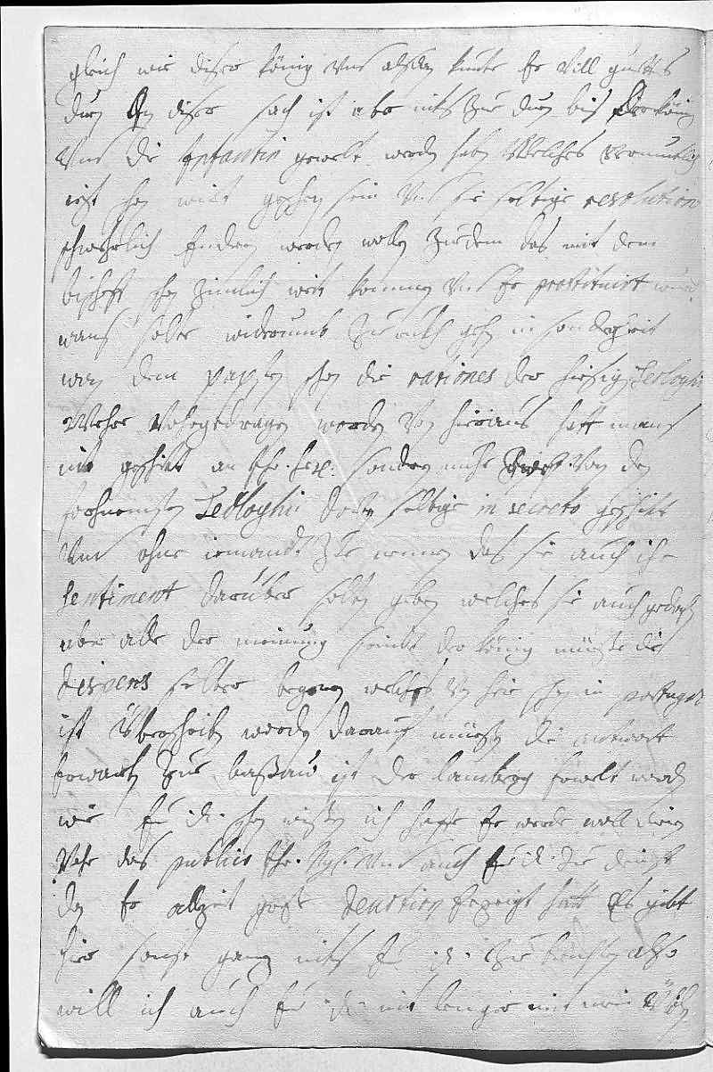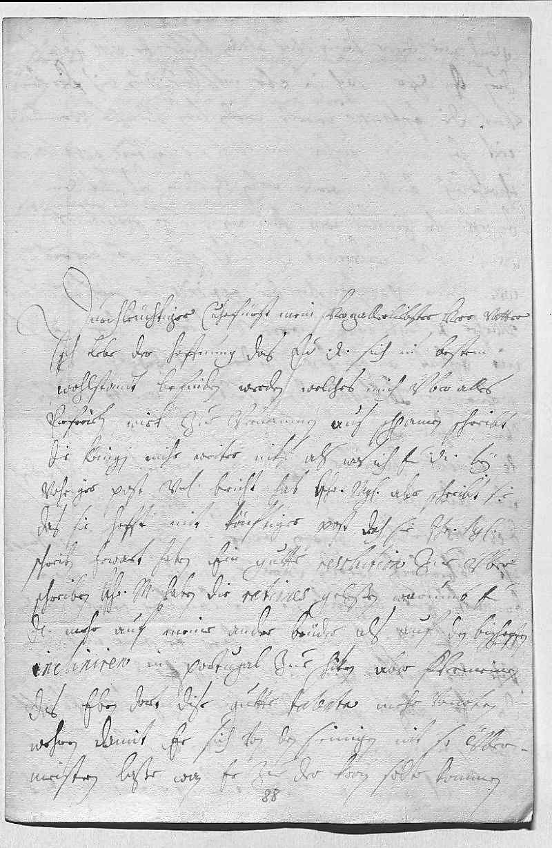 0001Durchleüchtiger Cuhrfürst, mein herzallerliebster herr vatter 0002Ich lebe der hoffnung, das ewer Durchlaucht sich in bestem 0003wohlstandt befinden werden, welches mich über alles 0004erfreien wirt zue vernemmen. Aus Schpanien schreibt 0005die Königin mihr weiter niks, als was ich ewer Durchlaucht bey 0006vohriger post vnterdehnigst bericht hab. Ihr Mayestät aber schreibt sie, 0007das sie hofft, mit könftiger post, dah sie ihr Mayestät 0008schreiben erwart haben, ein guette resolution zue über- 0009schreiben. Ihr Mayestät haben die rationes geleßen, warumb ewer 0010Durchlaucht mehr auf meine andre brüder als auf den Bischoffen 0011incliniren in Portugal zue schiken, aber vermeinen, 0012das eben dort dise gutte talenta mehr vonöten 0013wehren, damit er sich von den seinigen nit so über- 0014meistern laße, wan er zue der kron solte kommen