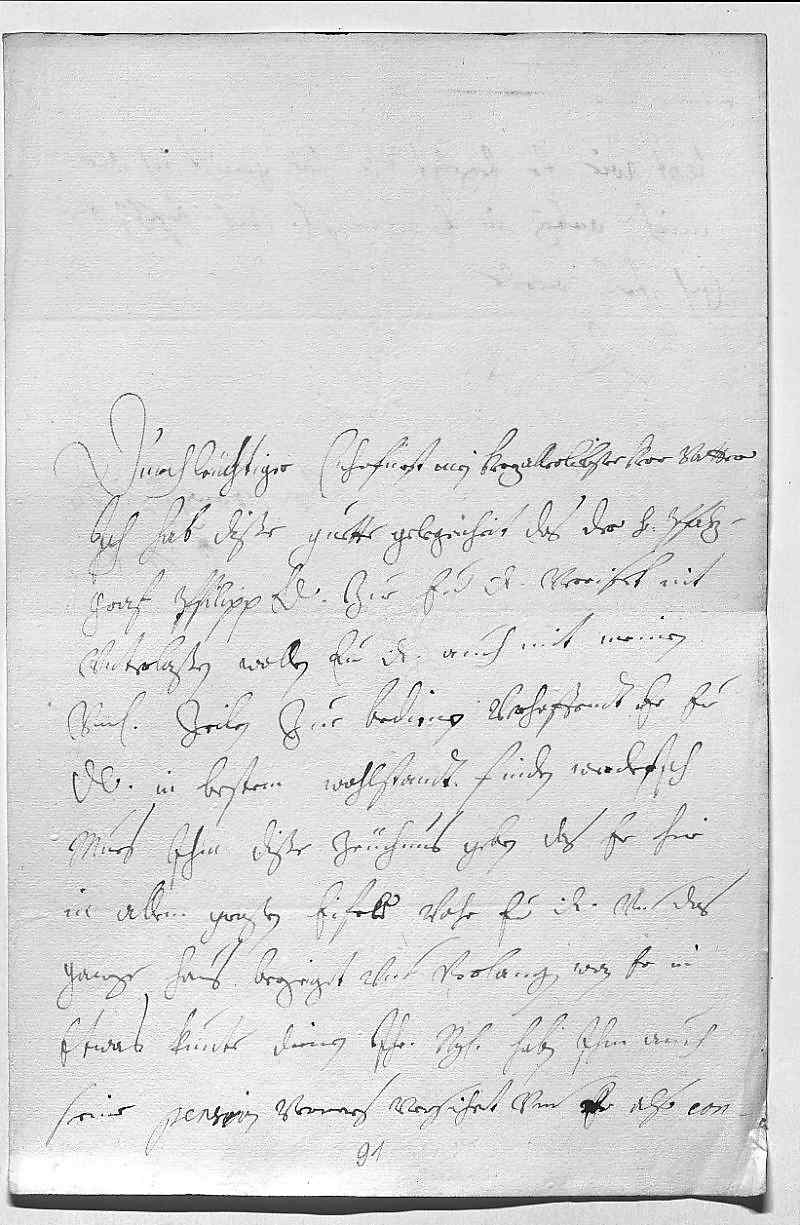 0001Durchleüchtiger Cuhrfürst, mein herzallerliebster herr vatter 0002Ich hab diße guette gelegenheit, das der herr Pfalz- 0003graf Pfilipp Liebden zue ewer Durchlaucht vereiset, nit 0004vnterlaßen wollen, ewer Durchlaucht auch mit meinen 0005vnterdehnigsten zeilen zue bedienen, verhoffendt, er ewer 0006Durchlaucht in bestem wohlstandt finden werde. Ich 0007mues ihm diße zeüchnus geben, das er hier 0008in allem großen eifer vohr ewer Durchlaucht vnd das 0009ganze haus bezeiget vnd verlangen, wan er in 0010etwas kunte dienen. Ihr Mayestät haben ihm auch 0011seine pension verners versichert vnd er also con-