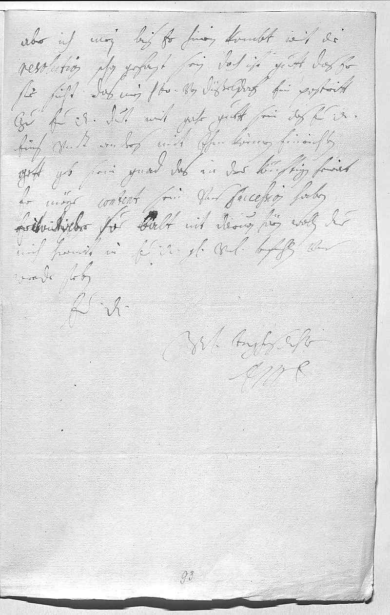 0039Aber ich mein, bis er hinein kombt, wirt die 0040resolution schon gefast sein, doch ist gutt, das er 0041sie sicht. Das mein herr bruder von Düßeldorf ein postritt 0042zu ewer Durchlaucht duet, wirt gahr guett sein, das ewer Durchlaucht 0043eins vndt anders mit ihm können einrichten. 0044Gott geb sein gnad, das in der könftigen heirat 0045er möge content sein vnd succession haben. 0046Er wirt aber so balt nit daruon hören wollen. Due 0047mich hirmit in ewer Durchlaucht gnade vnterdehnigst befehlen vnd 0048werde sterben 0049ewer Durchlaucht 0050vnterdehnigste trewgehorsamste dochter 0051EMT