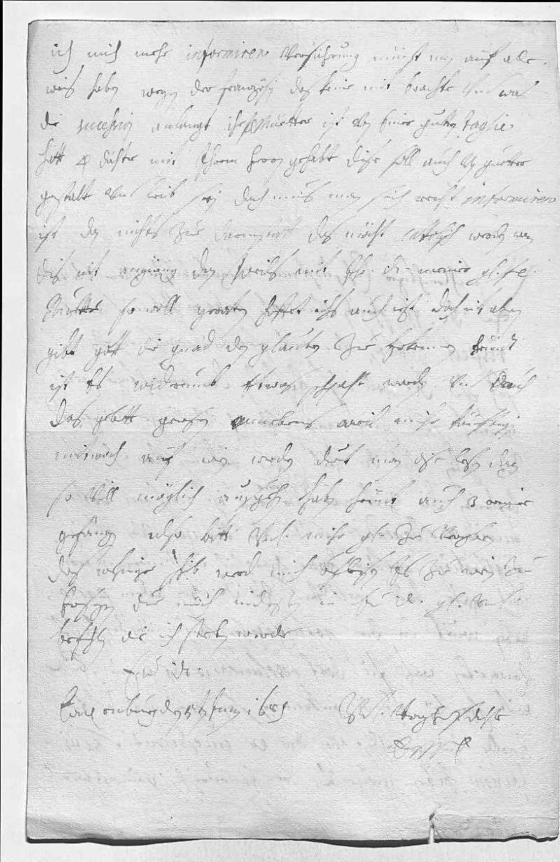 0016ich mich mehr informiren. Versicherung müest man auf alle 0017weis haben wegen der französin, das keine mit brachte. Von was 0018die sucession anlangt, ihr fraw müetter ist von einer guetten taglie, 0019hatt 4 döchter mit ihrem herrn gehabt, dise soll auch von guetter 0020gestalt vnd leib sein, doch mues man sich recht informiren. 0021Ist dan nichts zue Darmstatt, das möcht cattolisch werden, wan 0022dis nit angieng, dan weils mit ihr Durchlaucht, meiner geliebsten fraw 0023muetter, so woll geraten, hoffet ichs auch iezt. Doch nit allen 0024gibt gott die gnad den glauben zue erkennen. Heündt 0025ist es widrumb etwas schpaht worden vnd auch 0026das gebett gewesen annebens. Weil mihr könftigen 0027mitwoch auf Wien werden, duet man dise lesten dag 0028so vill möglich ausgehen, haben heünt auch 3 reiger 0029gefangen. Also bitt vnterdehnigst, mihr gnädigst zu vergeben, 0030das wehniger schreib, werd mich befleisen, es zue Wien zue 0031ersezen. Due mich indeßen in ewer Durchlaucht gnade vnterdehnigst 0032befehlen, die ich sterben werde 0033ewer Durchlaucht 0034vnterdehnigste trewgehorsamste dochter 0035EMT 0036Laxenburg den 5ten junij 1689