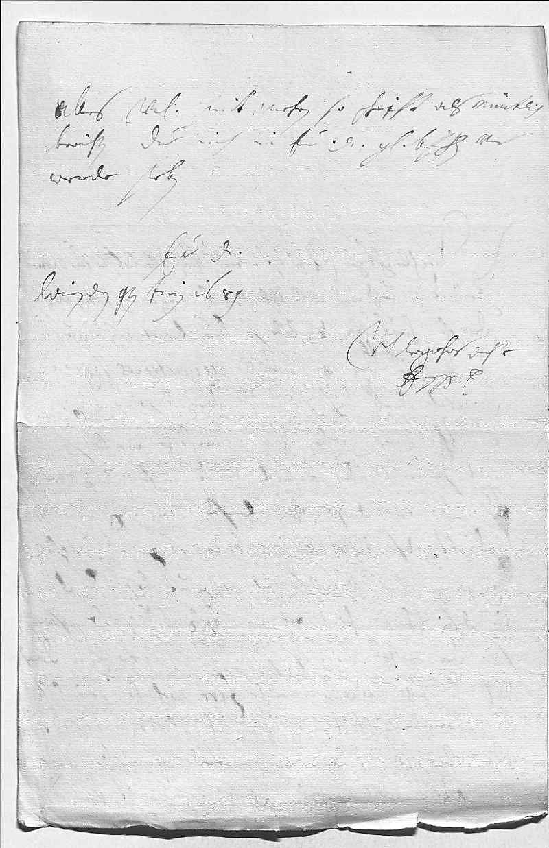 0001Durchleüchtiger Cuhrfürst, mein herzallerliebster herr vatter 0002Heündt mueß ich woll vnterdehnigst vmb vergebung bitten, das 0003dero gnädige schreiben von 3ten bede so kurz beantworten mueß, 0004der heüntige glükhlige dag gibt vill occupationes. Sage ewer 0005Durchlaucht vnterdehnigsten dankh, das sie mihr darzue so gnedige 0006wuntsch duen wollen, der almechtige wolle selbige 0007nach seinem willen erfüllen vndt mihr gnad verleyen, 0008ewer Durchlaucht vnterdehnigste dinst zue leisten. Dem sey ewich 0009gedankt, das dißer climactericus so genedig vohr- 0010bey gangen vnd ihr Mayestät sich so guet befinden, dan 0011in disen alter ihr Mayestät herr vatter vnd Erzherzoch Leopolt gestorben 0012sein. Der wolle verners sein gnad verleyen durch 0013das heüntige gnadentreiche fest, woh er sein lieb 0014vnd barmherzichkeit gezeigt. Ich glaub, morgen 0015oder lengst übermorgen werde gewis der Grav 0016von Öting noch wekh, also werd mit ihm