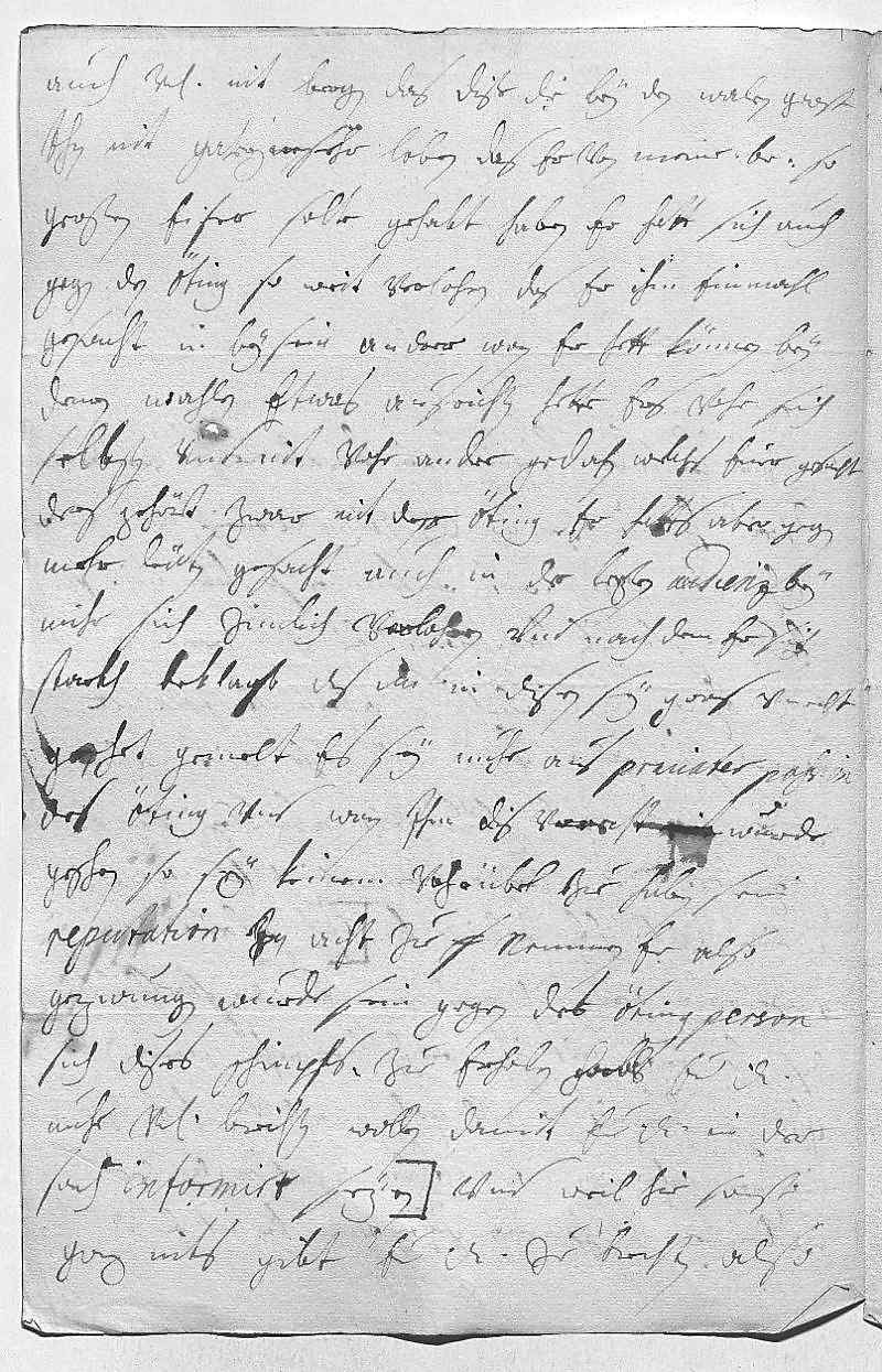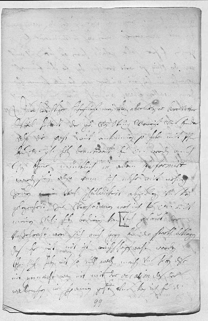 0001Durchleüchtiger Cuhrfürst, mein herzallerliebster herr vatter 0002Weil heündt der Grav von Oting verreist vnd ender 0003als die post wirt ankommen, so habe mit ihme 0004ewer Durchlaucht gnädiges schreiben beantwort. Ewer Durchlaucht werden auch 0005von ihme müntlich in allem informirt 0006worden sein, also kom ich nuhr, mit wehnig 0007zeilen mein vnterdehnigste schuldikeit abzuelegen vnd kein 0008gelegenheit zue versaumen, woh ich ewer Durchlaucht mit 0009meinen vnterdehnigsten schreiben bedienen kan, Ich glaub, der 0010Neßelraht werd sich auch gegen ewer Durchlaucht starkh beklagen, 0011das er izt nit ist Reichshoffraht worden. 0012Ihr Mayestät haben nit so vill wollen machen vnd hetten dise 0013nit gemacht, wan nit mit der occasion, das der 0014Wallenstein in Schpanien geht, vnd kan ich ewer Durchlaucht