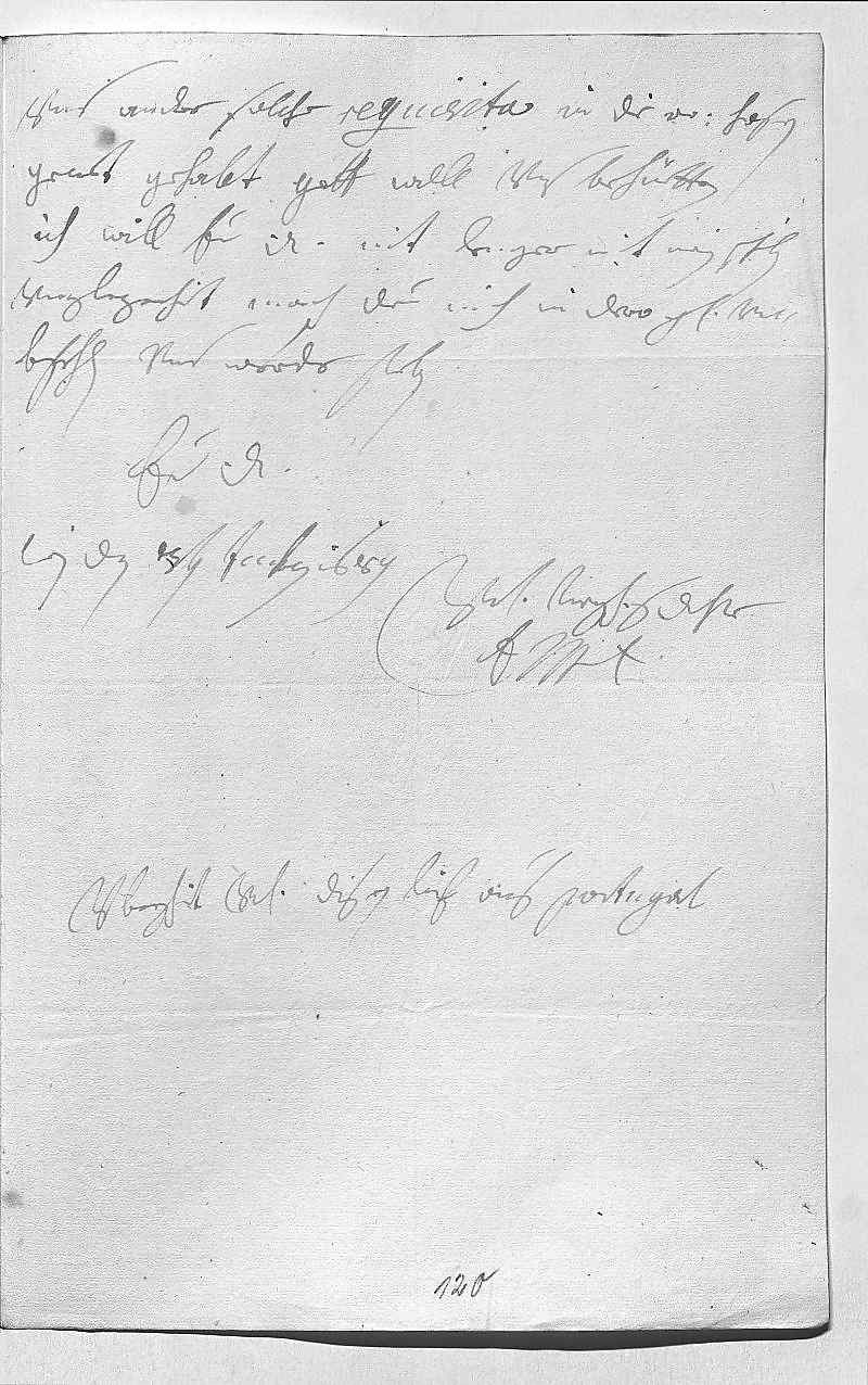 0033vnd andre solche requisita in die remissio hosen 0034genet gehabt, gott woll vns behüetten. 0035Ich will ewer Durchlaucht nit lenger mit mein schreiben 0036vngelegenheit machen, due mich in dero gnade vnterdehnigst 0037befehlen vnd werde sterben 0038ewer Durchlaucht 0039vnterdehnigste trewgehorsamste dochter 0040EMT 0041Wien den 3ten julij 16890042Überschik vnterdehnigst disen brif aus Portugal .