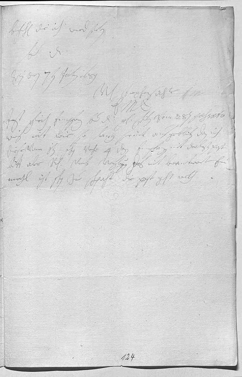0036befehlen, die ich werd sterben 0037ewer Durchlaucht 0038vnterdehnigste trewgehorsamste dochter EM 0039EMT 0040Wien den 7ten julij 16890041Jezt gleich empfang ich ewer Durchlaucht gnädige schreiben vom 28ten passato, 0042weis nit, wie so lang seint ausgebliben, dan ich 0043diese vom 1ten schon vohr 4 dagen empfangen mit der lezten post. 0044Bitt aber vnterdehnigst vmb vergebung, das nit beantwort, ein 0045mahl ist schon zue schpaht, die post geht wekh.
