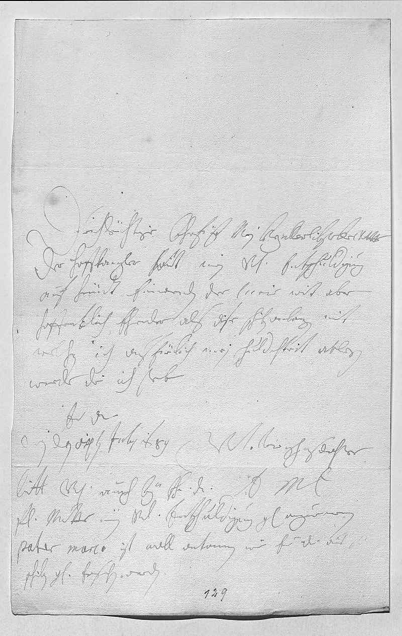 0001Durchleüchtiger Cuhrfürst, mein herzallerlibster herr vatter 0002Der Hoffkanzler wirt mein vnterdehnigste entschuldigung 0003auf heündt einwenden, der curir wirt aber 0004hoffentlich ehender als dise schreiben anlangen, mit 0005welchen ich ausfürlich mein schuldichkeit ablegen 0006werde, die ich sterbe 0007ewer Durchlaucht 0008vnterdehnigste tregehorsamste dochter 0009EMT 0010Wien den 14ten julij 16890011Bitt vnterdehnigst auch bey ihr Durchlaucht 0012fraw mutter ein vnterdehnigste entschuldigung gnädigst anzuenemen. 0013Pater Marco ist woll ankomen, wie ewer Durchlaucht aus seinem0014schreiben gnädigst ersehen werden.