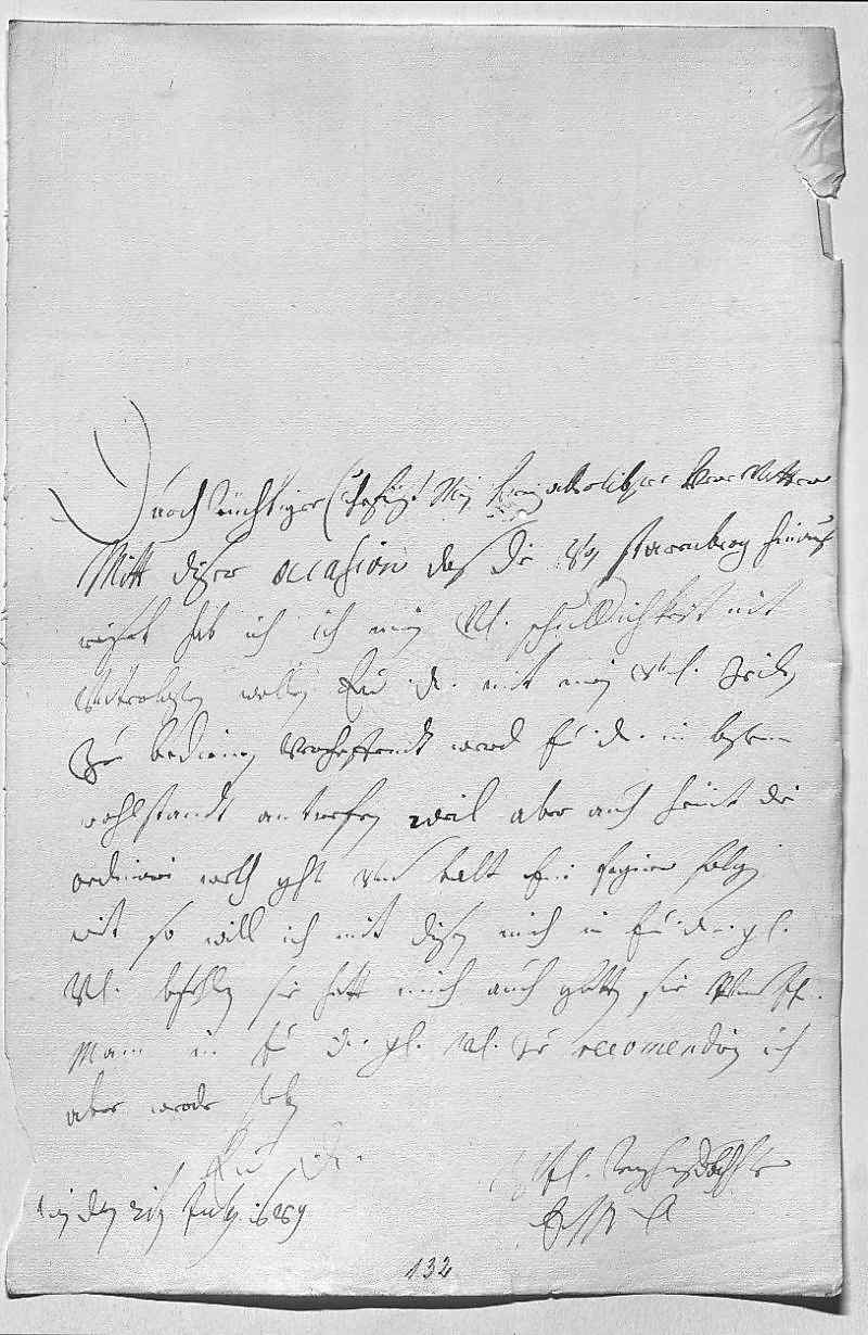 0001Durchleüchtiger Cuhrfürst, mein herzallerlibster herr vatter 0002Mitt diser occasion, das die von Starenberg hinauf- 0003reiset, hab ich ich mein vnterdehnigste schuldichkeit nit 0004vnterlaßen wollen, ewer Durchlaucht mit mein vnterdehnigsten zeilen 0005zu bedienen, verhoffendt, sie werd ewer Durchlaucht in bestem 0006wohlstandt antrefen. Weil aber auch heünt die 0007ordinari post wekh geht vnd balt ein eigner curir folgen 0008wirt, so will ich mit disen mich in ewer Durchlaucht gnade 0009vnterdehnigst befehlen. Sie hatt mich auch gebetten sie vnd ihr 0010mann in ewer Durchlaucht gnade vnterdehnigst zue recomendiren. Ich 0011aber werde sterben 0012ewer Durchlaucht 0013vnterdehnigste trewgehorsamste dochter 0014EMT 0015Wien den 21ten julij 1689