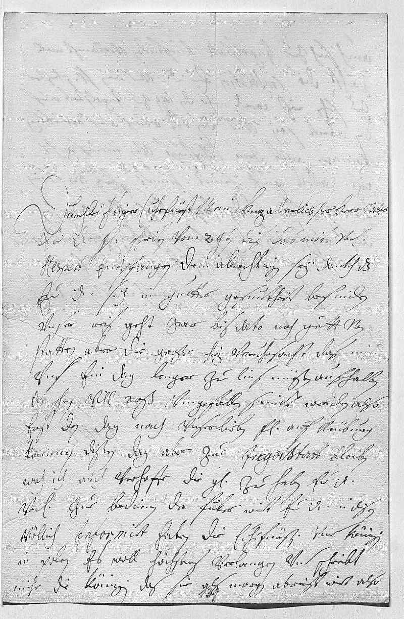 0001Durchleüchtiger Cuhrfürst, mein herzallerliebster herr vatter 0002Ewer Durchlaucht gnädiges schreiben vom 29ten dis hab mit vnterdehnigstem 0003respect empfangen. Dem almechtigen sey dankh, das 0004ewer Durchlaucht sich in guetter gesuntheit befinden. 0005Vnser reis geht zwar bis dato noch gutt von 0006statten, aber die große hiz veruhrsacht, das mihr 0007vns ein dag lenger zue Lins müeßen aufhalten, 0008dan schon vill roß vmgefallen seindt. Werden also 0009erst den dag nach vnser lieben fraw auf Neüburg 0010kommen, dißen dag aber zue Ingolstatt bleiben, 0011woh ich auch verhoffe, die gnade zue haben, ewer Durchlaucht 0012vnterdehnigst zue bedienen. Der Fuker wirt ewer Durchlaucht in disen 0013völlich informirt haben. Die Cuhrfürstin vnd Königin 0014in Polen es woll höchstens verlangen, vnd schreibt 0015mihr die Königin, das sie als morgen abreist, wirt also