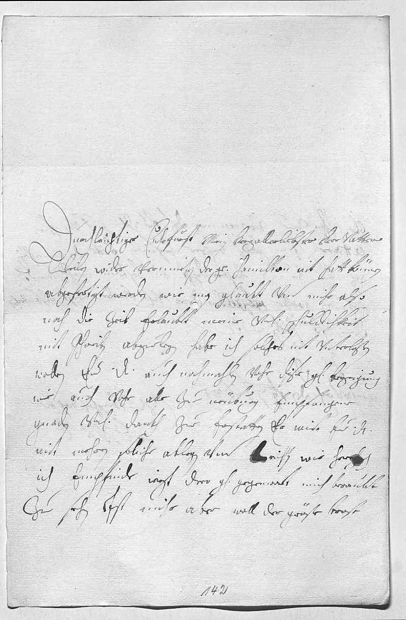 0001Durchleüchtiger Cuhrfürst, mein herzallerliebster herr vatter 0002Weilen wider vermeineten der Grav Hamilton nit hatt können 0003abgefertigt werden, wie man glaubt, vnd mihr also 0004noch die zeit erlaubt, meine vnterdehnigste schuldichkeit 0005mit schreiben abzuelegen, habe ich solches nit vnterlaßen 0006wollen, ewer Durchlaucht auch nochmahlen vohr dise gnädige erzeigung, 0007wie auch vohr alle zue Neüburg empfangene 0008gnaden vnterdehnigst dankh zue erstatten. Er wirt ewer Durchlaucht 0009mit mehren soliche ablegen vnd berichten, wie herzlich 0010ich empfinde, iezt dero gnädigster gegenwart mich beraubt 0011zue sehen. Ist mihr aber woll der gröste trost,
