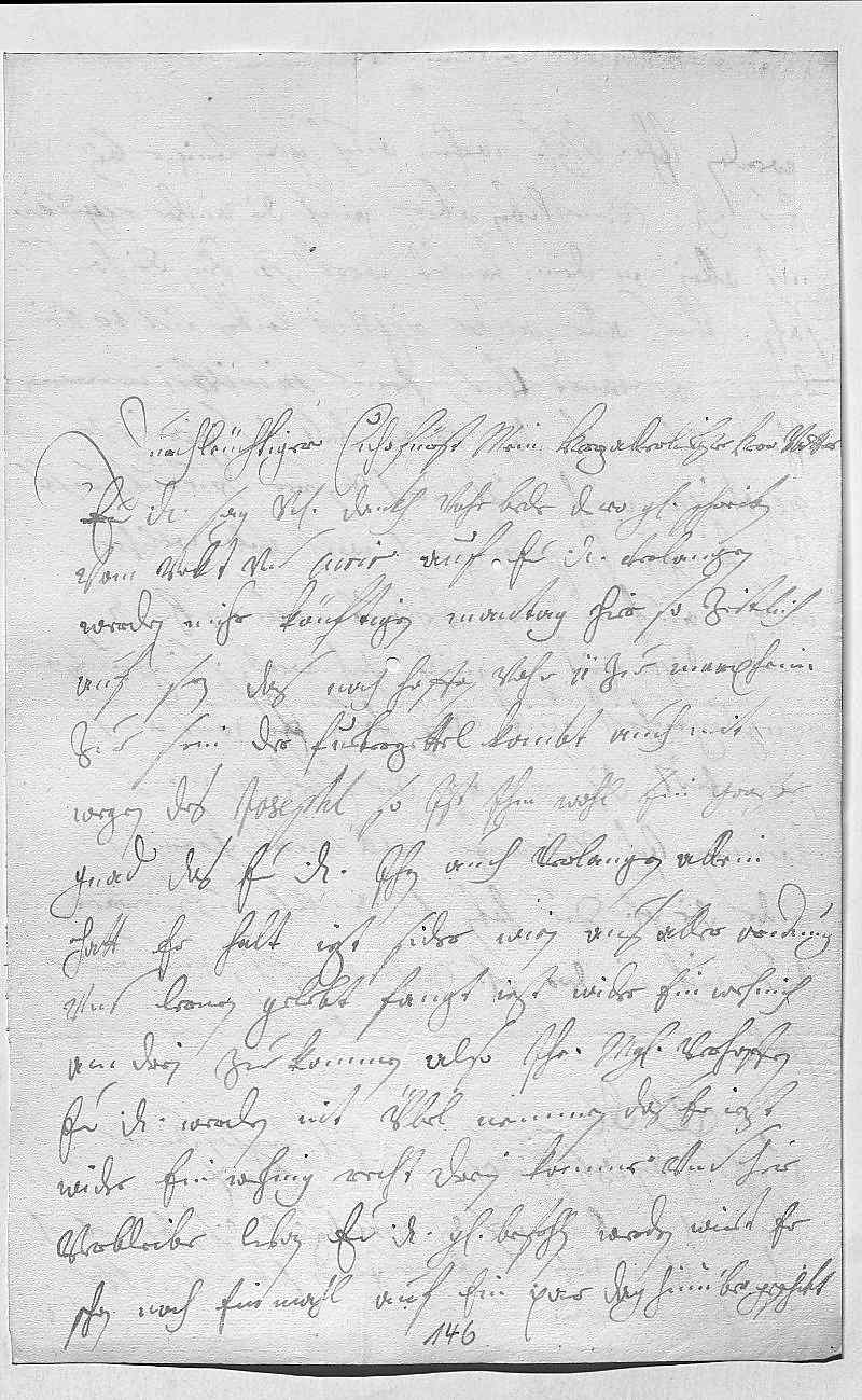 0001Durchleüchtiger Cuhrfürst, mein herzallerliebster herr vatter 0002Ewer Durchlaucht sag vnterdehnigsten dankh vohr bede dero gnädige schreiben 0003vom Vokt vnd curir. Auf ewer Durchlaucht verlangen 0004werden mihr könftigen montag hier so zeitlich 0005auf sein, das noch hoffen vohr 11 zue Marxheim 0006zue sein. Der fueterzettel kombt auch mit. 0007Wegen des Josephl, so ist ihm wohl ein große 0008gnad, das ewer Durchlaucht ihn auch verlangen, allein 0009hatt er halt iezt sider Wien aus aller ordnung 0010vnd lernen gelebt, fangt iezt wider ein wehnich 0011an drein zue kommen, also ihr Mayestät verhoffen, 0012ewer Durchlaucht werden nit übel nemmen, das er iezt 0013wider ein wehnig recht drein komme vnd hier 0014verbleibe. Wan ewer Durchlaucht gnädigst befehlen werden, wirt er 0015schon noch ein mahl auf ein par dag hinübergeschikt