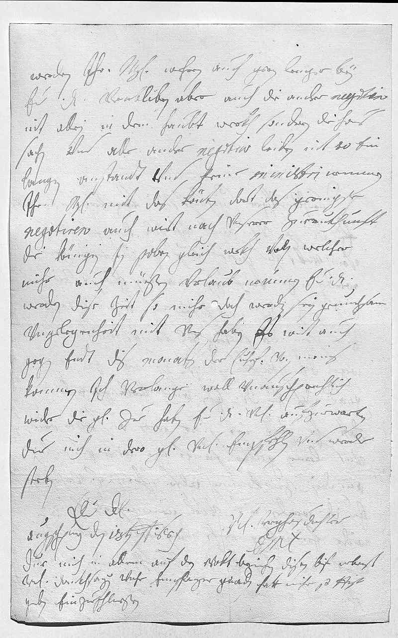 0016werden. Ihr Mayestät wehren auch gern lenger bey 0017ewer Durchlaucht verbliben, aber auch die andre negotien, 0018nit allein in dem haubt werkh, sondren die haus- 0019sachen vnd alle andere negotia leiden nit so ein 0020langen anstandt, vnd keine ministri nemmen 0021ihr Mayestät mit, das könten dort das geringste 0022negotiren. Auch wirt nach vnserer zuerukhunft 0023die Königin in Polen gleich wekh, von welcher 0024mihr auch müeßen vrlaub nemmen. Ewer Durchlaucht 0025werden dise zeit, so mihr dah werden sein, genuchsam 0026vngelegenheit mit vns haben. Es wirt auch 0027gegen endt dis monats der Cuhrfürst von Meins 0028kommen. Ich verlange woll vnauschprechlich, 0029wider die gnade zue haben, ewer Durchlaucht vnterdehnigst aufzuewarten. 0030Due mich in dero gnade vnterdehnigst empfehlen vnd werde 0031sterben 0032ewer Durchlaucht 0033vnterdehnigste trewgehorsamste dochter 0034EMT 0035Augschpurg den 13ten septembris 16890036Due mich in allem auf den Vokt beziehen. Disen brif nebenst 0037vnterdehnigstem dankhsagen vohr empfangne gnaden hatt mihr Pater Hippolito 0038geben einzueschließen.