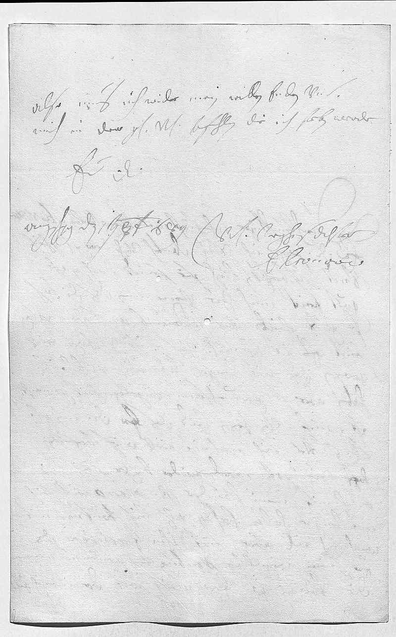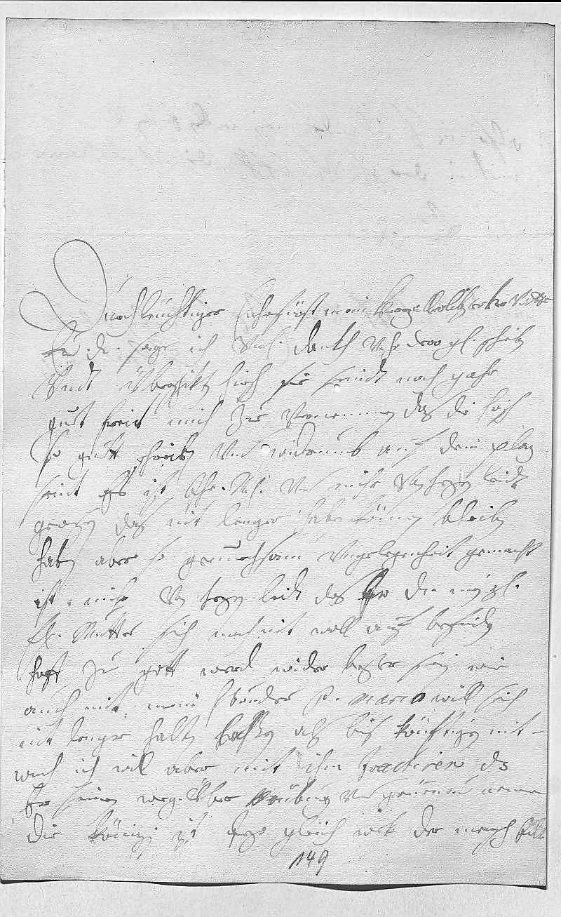 0001Durchleüchtiger Cuhrfürst, mein herzallerlibster her vatter 0002Ewer Durchlaucht sage ich vnterdehnigsten dankh vohr dero gnädiges schreiben 0003vndt überschikten hirsch, sie seindt noch gahr 0004guet. Freit mich zue vernemmen, das die hirsch 0005so guett schreien vnd widerumb auf dem plaz 0006seint. Es ist ihr Mayestät vnd mihr von herzen leidt 0007gewesen, das nit lenger haben können bleiben, 0008haben aber so genuechsam vngelegenheit gemacht. 0009Ist mihr von herzen leidt, das ir Durchlaucht, mein geliebste 0010fraw mutter, sich noch nit woll auf befinden, 0011hoff zu gott, werd wider beßer sein, wie 0012auch mit mein herrn bruder . Pater Marco will sich 0013nit lenger halten laßen als bis könftigen mit- 0014woch, ich will aber mit ihm tractiren, das 0015er seinen weg über Neüburg vnd Grüenau nemme. 0016Die Königin ist jezo gleich wek. Der mensch eilt,