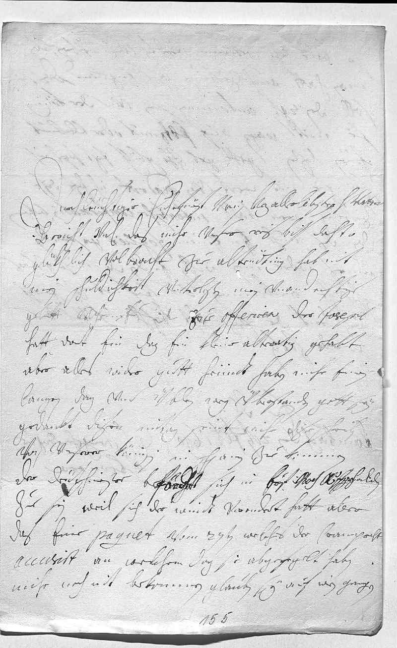 0001Durchleüchtiger Cuhrfürst, mein herzallerlibster herr vatter 0002Bericht vnterdehnigst, das mihr vnser reis bis dahto 0003gükhlich volbracht. Zue Altenöting hab nit 0004mein schuldichkeit vnterlaßen, mein vnandechtigs 0005gebett vohr ewer Durchlaucht zue offeriren. Der Josepl 0006hatt dort ein dag ein kleine alteration gehabt, 0007ist aber alles wider gutt. Heündt haben mihr einen 0008langen dag vnd üblen weg überstanden, gott sey 0009gedankt. Disen mitag seint mihr dise schreiben 0010von vnserer Königin in Schpanien zue kommen. 0011Der Deütschmeister beförcht sich in brif noch aufgehalden 0012zue sein, weil sich der windt verendert hatt, aber 0013das eine paquet vom 27ten, welches der Cramprecht 0014accusirt, an welchem dag sie abgesegelt, haben 0015mihr noch nit bekommen, glauben, es sey auf Wien gangen.