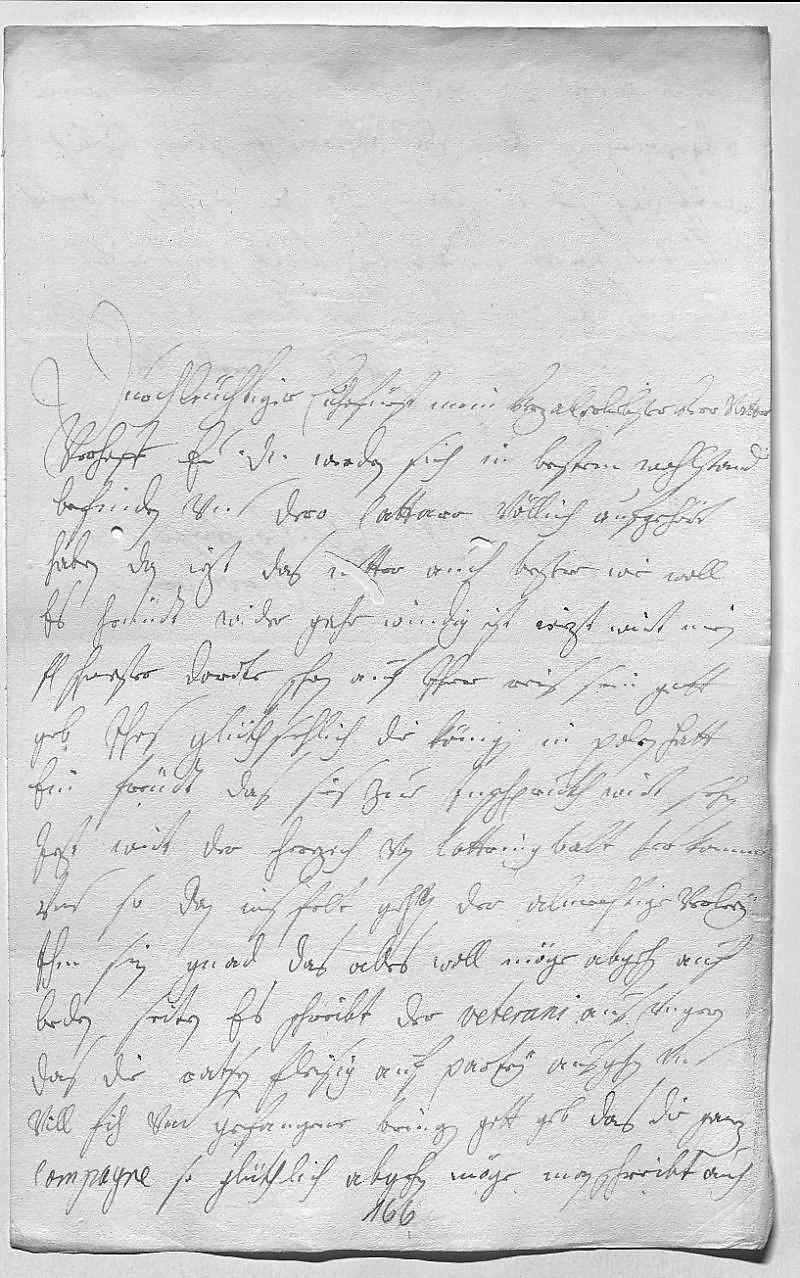 0001Durchleüchtiger Cuhrfürst, mein herzallerliebster herr vatter 0002Verhoffe, ewer Durchlaucht werden sich in bestem wohlstand 0003befinden vnd dero cattarr völlich aufgehört 0004haben, dan izt das wetter auch beßer, wie woll 0005es heündt wider gahr windig ist. Iezt wirt mein 0006fraw schwester Dorote schon auf ihrer reis sein, gott 0007geb ihrs glükhsehlich. Die Königin in Polen hatt 0008ein freüdt, das sies zue Inschprukh wirt sehn. 0009Jezt wirt der Herzoch von Lottring balt her kommen 0010vnd so dan ins felt gehen, der almechtige verley 0011ihm sein gnad, das alles woll möge abgehen auf 0012beden seiten. Es schreibt der Veterani aus Vngern, 0013das die ratsen fleisig auf partey ausgehn vnd 0014vill fih vnd gefangene bringen, gott geb, das die ganz 0015compagne so glükhlich abgehn möge. Man schreibt auch,