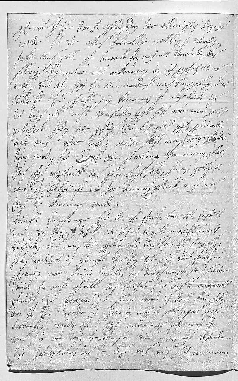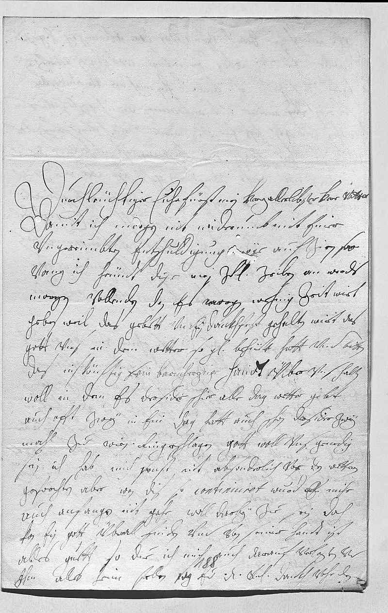 0001Durchleüchtiger Cuhrfürst, mein herzallerlibster herr vatter 0002Damit ich morgen nit widerumb mit einer 0003vngereimbten entschuldigung möge aufzien, so 0004vang ich heündt dise mein vnterdehnigste zeilen an. Werds 0005morgen vollenden, dan es morgen wehnig zeit wirt 0006geben, weil das gebett vnd ein dankhfest gehalten wirt, das 0007gott vns in dem wetter so gnädig behütt hatt, vnd bitten, 0008das ins könftig sein barmherzige handt über vns halten 0009woll, in dem es dersider schier alle dag wetter gibt, 0010auch offt zwey in ein dag. Hatt auch schon dersider zwey 0011mahl zue Wien eingeschlagen, gott woll vns genedig 0012sein. Ich hab mich sonst nit absonderlich vor den wettern 0013geforchten, aber wan dis so continuiret, wurd es mihr 0014auch anfangen, nit gahr woll darbey zue sein. Doch 0015kan ein gott überall finden, vnd von seiner handt ist 0016alles guett, so due ich mich auch darauf verlaßen vnd 0017ihm alles heim stellen. Sag ewer Durchlaucht vnterdehnigsten dankh vohr den