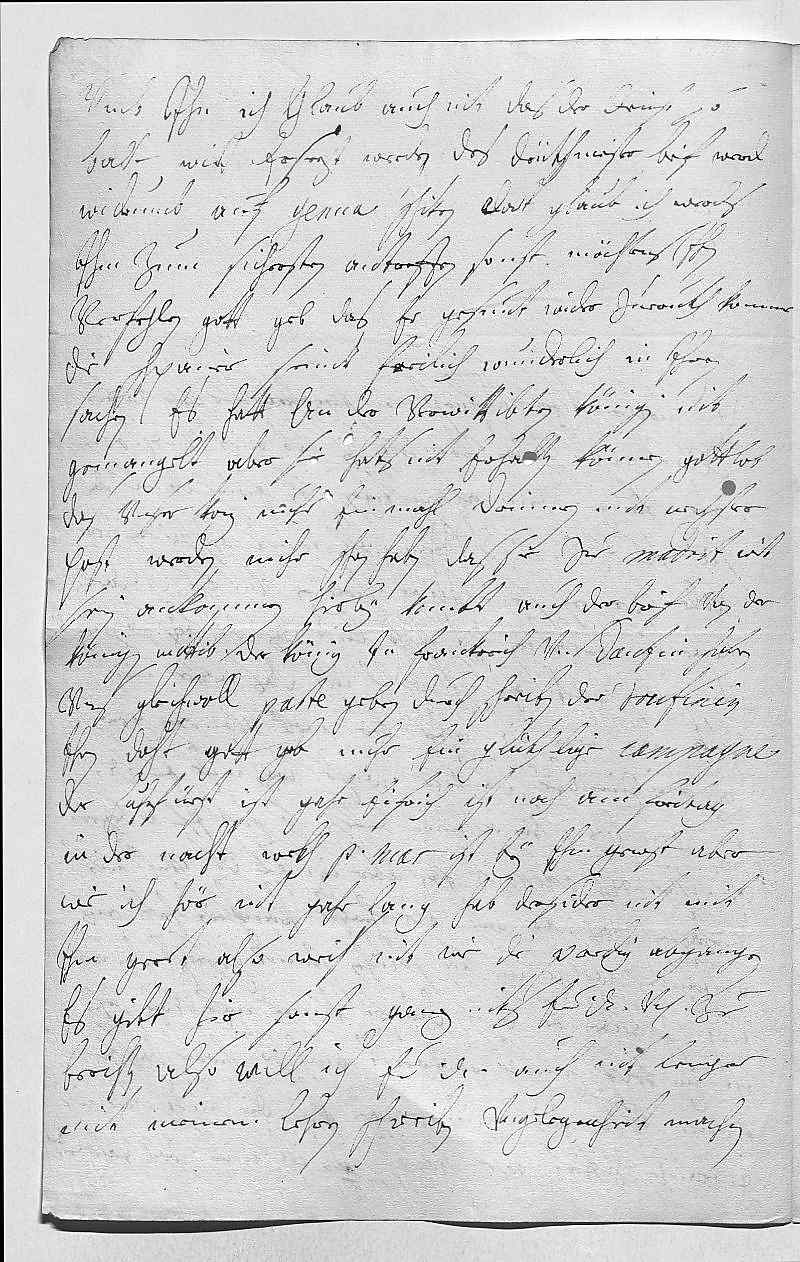 0018vmb ihn . Ich glaub auch nit, das der dienst so 0019balt wirt ersezt werden. Des Deütschmeister brif werd 0020widrumb auf Genua schiken, dort, glaub ich, werds 0021ihm zum sichersten antreffen, sonst möchtens ihn 0022verfehlen. Gott geb, das er gesunt wider zuerukh komme. 0023Die schpanier seint freilich wunderlich in ihren 0024sachen. Es hatt an der verwittibten Königin nit 0025gemangelt, aber sie hats nit erhalten können, gottlob, 0026das vnser Konigin nuhr einmahl drinnen ist. Mit nechster 0027post werden mihr schon haben, das sie zue Madrit wirt 0028sein ankommen. Hirbey kombt auch der brif von der 0029Königin wittib. Der König in Frankreich vnd Daufin haben 0030vns gleichwoll parte geben durch schreiben der Doufinin 0031ihren doht. Gott geb nuhr ein glükhlige campagne. 0032Der Cuhrfürst ist gahr eifrich, ist noch am freitag 0033in der nacht wekh, Pater Marco ist bey ihm gewest, aber 0034wie ich hör, nit gahr lang, hab dersider nit mit 0035ihm geret, also weis nit, wie die predig abgangen ist. 0036Es gibt hier sonst ganz niks, ewer Durchlaucht vnterdehnigst zue 0037berichten, also will ich ewer Durchlaucht auch nit lenger 0038mit meinem lehren schreiben vngelegenheit machen,