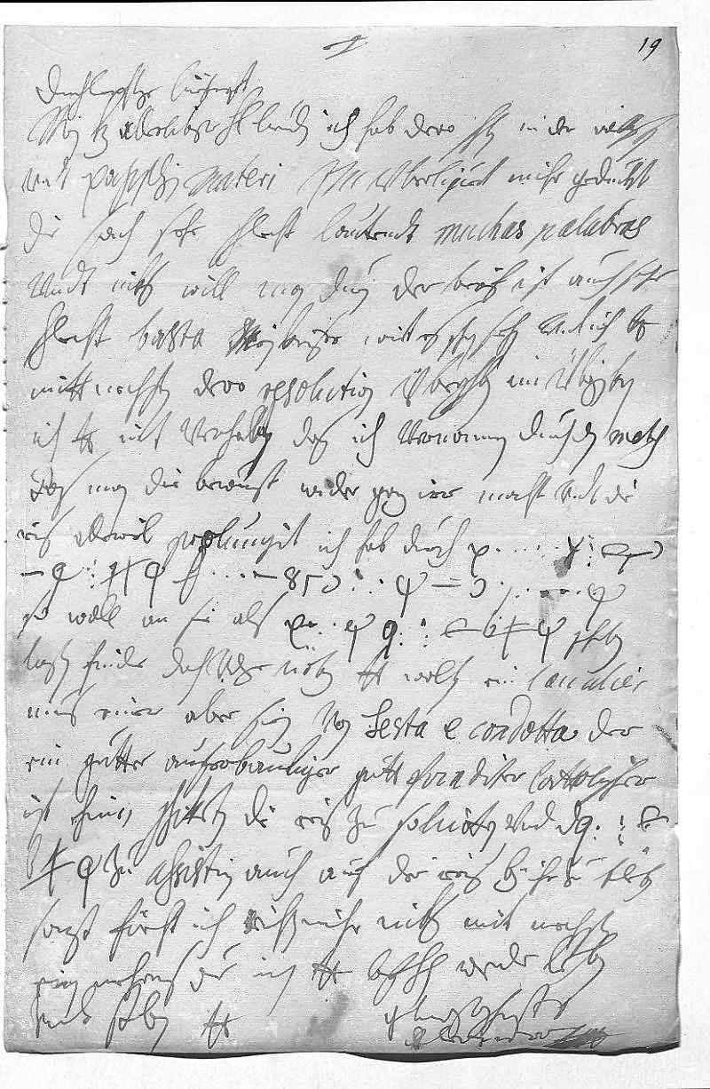 0001Durchleichtiger Curfürst, 0002mein herzallerlibster herr bruder. Ich hab dero schreiben in der wällischen 0003vndt papstischen materi ihr Mayestät überliuert. Mihr gedunkt 0004die sach sehr schlecht lautendt, muchas palabras, 0005vndt niks will man duen. Der brif ist auch sehr 0006schlecht, basta, mein Keiser wirt es schon sehn vnd ich dero Liebden 0007mitt nechsten dero resolution überschreiben. Im übrigen kan 0008ich dero Liebden nit verhalten, das ich vernommen durch den Metsch, 0009das man die bewust wider ganz irr macht vndt die 0010reis alleweil prolungirt, ich hab durch die Fürst0011in von Lischtenstein0012so woll an sie als den Bourpan schreiben 0013lasen, finde doch vohr nötig, dero Liebden wolten ein caualier, 0014mus einer aber sein von sesta e condotta, der 0015ein gutter auferbauliger, gutt fondirter cattolischer 0016ist, hinein schiketen, die reis zu solicirten vnd den Bour0017pan zu assistirn, auch auf der reis bey ihr zu bleiben, 0018sonst, förcht ich, richten mihr niks. Mit nechsten 0019ein mehres, due mich dero Liebden befehlen, werde leben 0020vndt sterben 0021dero Liebden 0022getrewsteschwester 0023Eleonora