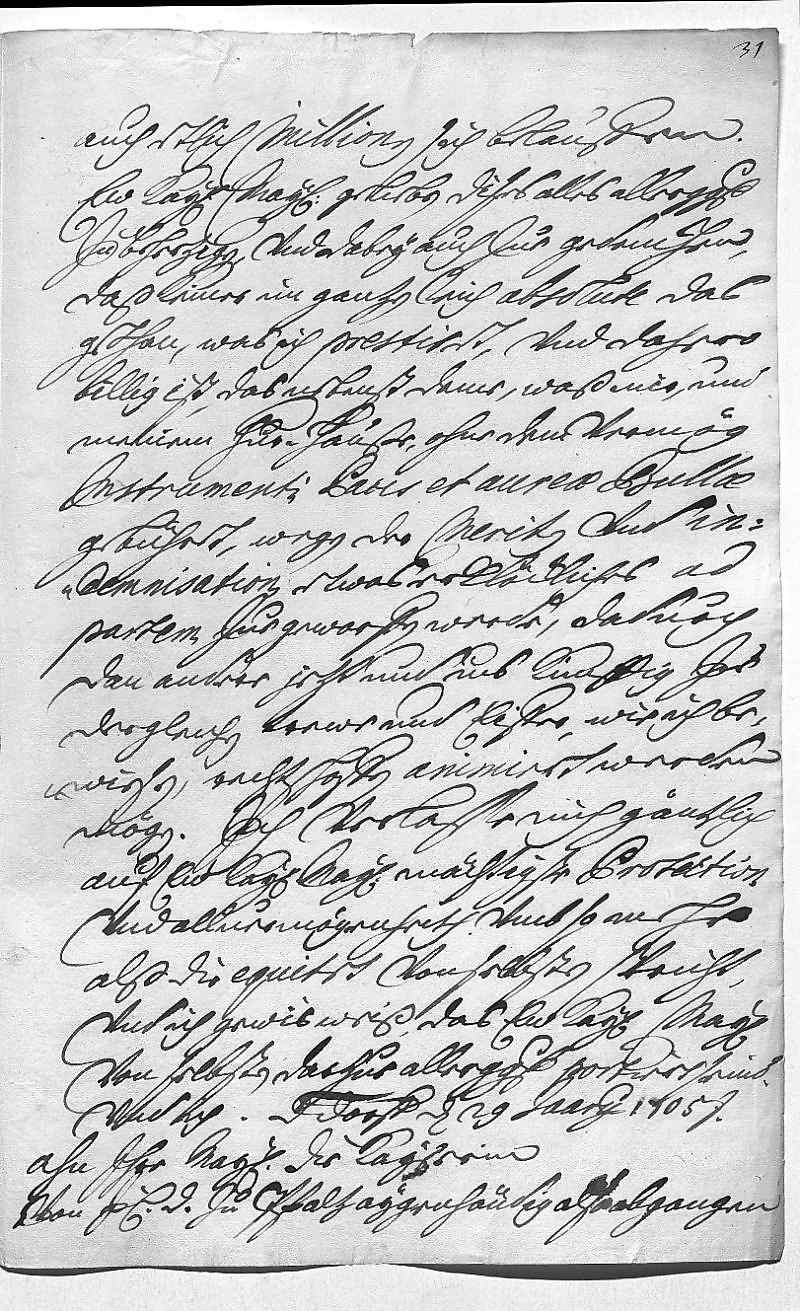 Hat den Bevier auf EMTs Empfehlung hin für so lange zu seinem Residenten in Lüttich mit einer jährlichen Pension von 900 Gulden gemacht, bis er ihn in den Spanischen Niederlanden versorgen kann. – Verlässt sich ganz auf EMTs Protektion in Anerkennung seiner treuen Dienste und des großen Schadens für seine Länder, der ihm dabei entstanden ist.