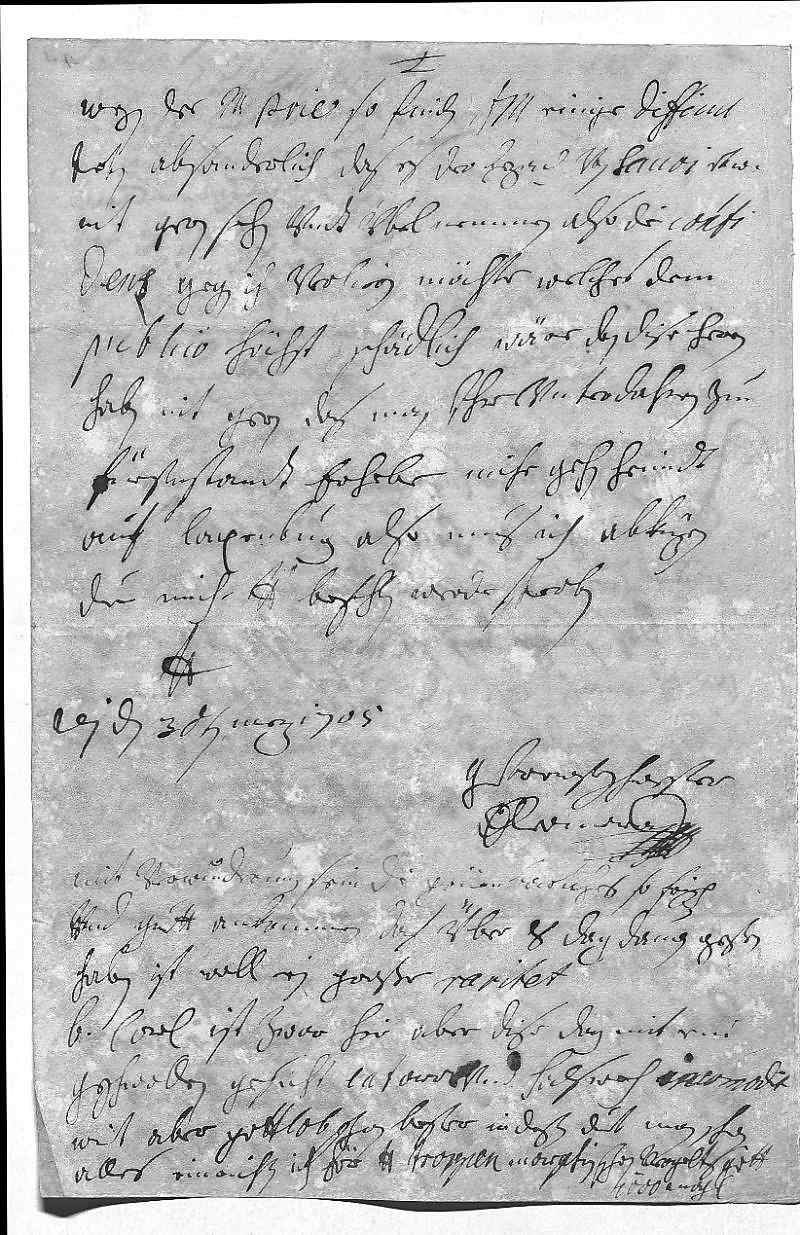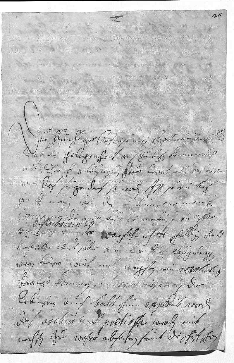 0001Durchleüchtiger Curfürst, mein herzallerliebster herr bruder 0002Vmb kein gelegenheit aus zu laßen, komme auch 0003mit dißer, dero Liebden 3 liebste schreiben zue beantworten, das erste 0004wegen des Sinzendorf, so werden ihr Mayestät so ein brif 0005an dero Liebden machen laßen, den sie können Cur Mains 0006comuniciren, die andren bede, die nachrichten in ciffer, 0007auch des Lecherain vnd wegen Münster, warfohr ich dero Liebden schuldigen dankh 0008erstatte, vndt habe alles ihr Mayestät vohrgedragen. 0009Wegen Beyren wirt mitt negsten ein resolution 0010herauß kommen, so dero Liebden aprobiren werden, der 0011Lebestein soll auch balt hinn expedirt werden. 0012Das archiu vndt pretiosa werden mit 0013nechsten zue waßer abfahren, seint die schiff schon bereit.