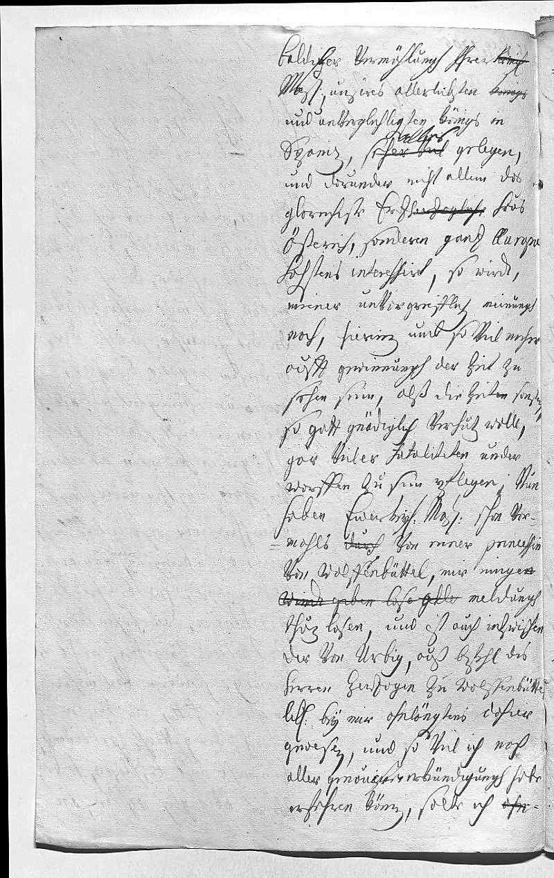 Hat Nachricht vom d’Olivier, dass wegen der Prinzessin von Ansbach wohl nichts mehr zu hoffen ist. – Unlängst war der von Urbich auf Befehl des Herzogs von Wolfenbüttel bei JW. Die Prinzessin von Wolfenbüttel soll eine schöne Gestalt, einen sehr guten Verstand und eine anmutige Natur haben. Bei ihr ist im Gegensatz zu den italienischen Prinzessinnen sowohl auf die Zufriedenheit des Königs (Karl von Spanien) als auch auf die für ganz Europa so wichtige Sukzession zu hoffen. Sendet beiliegend, was er dem König geschrieben hat. Schlägt vor, den Pater Tönnemann nach Wolfenbüttel zu schicken, um die Prinzessin in der katholischen Religion zu informieren, und sie dann unter einem Vorwand zu JW kommen zu lassen. – Sendet beiliegend sein Schreiben an den nunmehrigen Kaiser (Joseph I.). Bittet um Anweisung, wie er sich diesem gegenüber bei den gegenwärtigen Umständen zu verhalten hat.